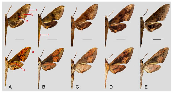 - Jiang, Z.-H.; Huang, C.-L. Hawkmoths of China; Haixia Art and Literature Publishing House: Fuzhou, China, 2023. [Google Scholar]