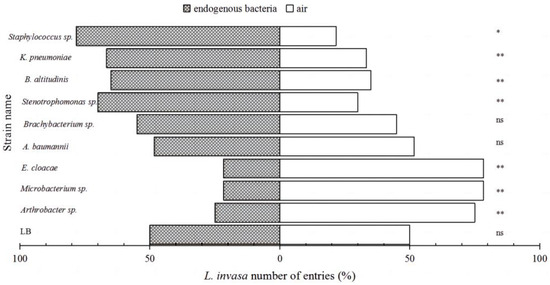 3.1. L. Response of L. invasa to Different Endogenous Bacteria