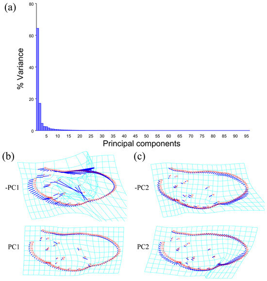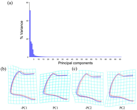 - Klingenberg, C.P. MorphoJ: An integrated software package for geometric morphometrics. Mol. Ecol. Resour. 2011, 11, 353–357. [Google Scholar] [CrossRef] [PubMed]