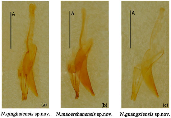 Habitus photographs of specimens were captured using the Olympus E-M5II camera (OLYMPUS, Beijing, China) for stacked photography. The detailed photographs of mouthparts and genitalia were illustrated using an α7RIII SONY camera (SONY, Tokyo, Japan). Final plates were enhanced using Adobe Photoshop CS6.0 (Adobe Systems Inc., San José, CA, USA). Morphological terminology follows Lawrence et al. [48,49].