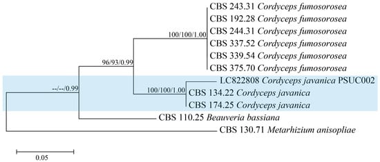 2.1. DNA Extraction and Phylogenetic Analysis of Cordyceps javanica