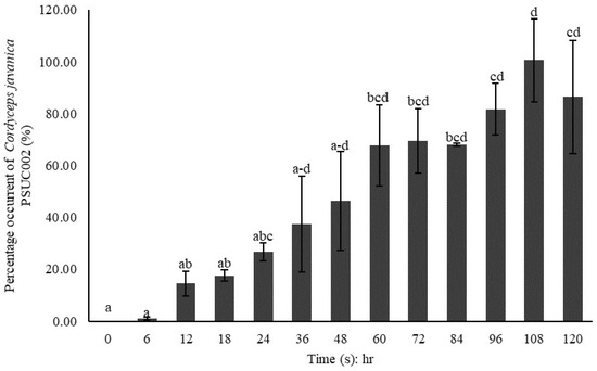 3.2. The Mortality Rate of BPH-Infected Cordyceps javanica