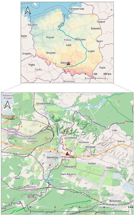 - Kolesiński, M.; Nowak-Kolesińska, A.; Walker, M.; Błasiak, M. Sławków Commune—Study of Conditions and Directions of Spatial Development of the City of Sławków. 2016. Available online: https://bip.slawkow.pl/res/serwisy/pliki/14583591?version=1.0 (accessed on 14 January 2024). (In Polish).