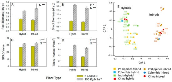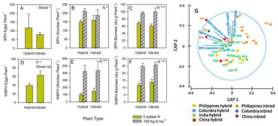- Horgan, F.G.; Bernal, C.C.; Ramal, A.F.; Almazan, M.L.P.; Mundaca, E.A.; Crisol-Martínez, E. Heterosis for interactions between insect herbivores and 3-Line hybrid rice under low and high soil nitrogen conditions. Insects 2024, 15, 416. [Google Scholar] [CrossRef] [PubMed]
