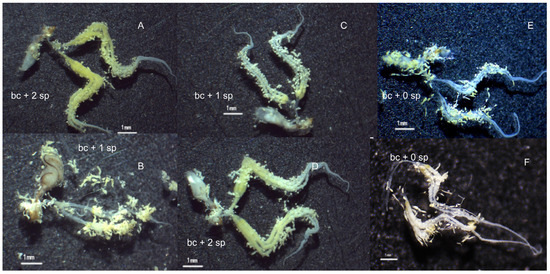 C. medinalis female ovaries in different migration phases: (A) immigrants caught in sweep net; (B) immigrants caught by floral trapping; (C) local breedings caught in sweeping net; (D) local breedings caught by floral trapping; (E) Grade I of emigrates caught in sweep net; (F) Grade II of emigrates caught in sweep net. Bc: bursa copulatrix; sp: spermatophore; the number before sp means the mating times.