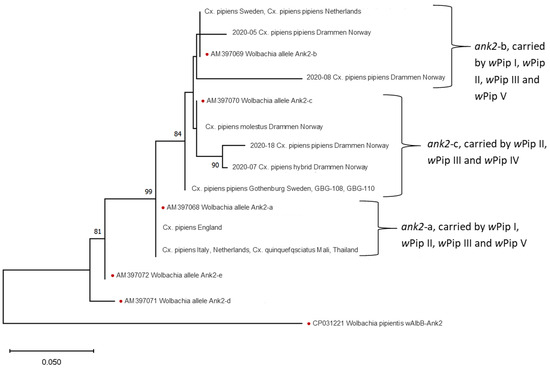 With a growing concern for diseases spread by Cx. pipiens, such as West Nile fever and Usutu, also in northern Europe, the differences between the urban Cx. pipiens f molestus ecotype and the more rural Cx. pipiens f pipiens are of interest. This study used Wolbachia wPip group to show that different populations of Cx. pipiens are infected by different Wolbachia and likely do not intermix to any large degree. These results further show that different populations of Cx. pipiens f molestus most likely have different origins and are dependent on human transports.