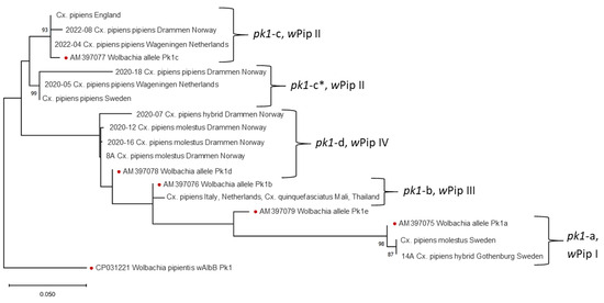 wPip strains from specimens from England and Italy. Using the phylogenetic tree of