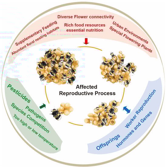 Zhao, X.; Jiang, J.; Pang, Z.; Ma, W.; Jiang, Y.; Fu, Y.; Liu, Y. Tracking Existing Factors Directly Affecting the Reproduction of Bumblebees: Current Knowledge. Insects 2024, 15, 654. https://doi.org/10.3390/insects15090654