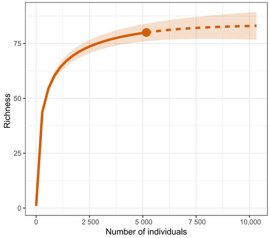 - Hsieh, T.C.; Ma, K.H.; Chao, A. iNEXT: An R package for rarefaction and extrapolation of species diversity (Hill numbers). Methods Ecol. Evol. 2016, 7, 1451–1456. [Google Scholar] [CrossRef]