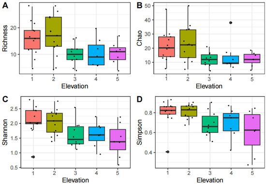 - Peters, M.K.; Hemp, A.; Appelhans, T.; Behler, C.; Classen, A.; Detsch, F.; Ensslin, A.; Ferger, S.W.; Frederiksen, S.B.; Gebert, F.; et al. Predictors of elevational biodiversity gradients change from single taxa to the multi-taxa community level. Nat. Commun. 2016, 7, 13736. [Google Scholar] [CrossRef]