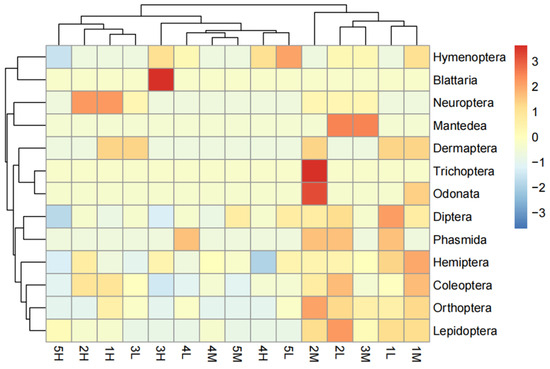 3.5. The Analysis of Insect Community Similarities across Varying Elevations and Levels of Human Disturbance