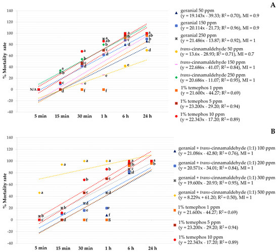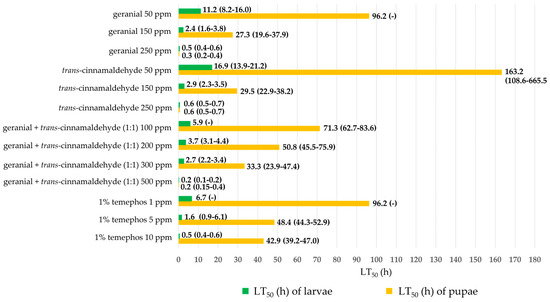 APA StyleSittichok, S., Passara, H., Sinthusiri, J., Moungthipmalai, T., Puwanard, C., Murata, K., & Soonwera, M. (2024). Synergistic Larvicidal and Pupicidal Toxicity and the Morphological Impact of the Dengue Vector (Aedes aegypti) Induced by Geranial and trans-Cinnamaldehyde. Insects, 15(9), 714. https://doi.org/10.3390/insects15090714