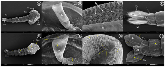 - Burgger, B.P.; Martinez, L.C.; Plata-Rueda, A.; de Castro e Castro, B.M.; Soares, M.A.; Wilcken, C.F.; Carvalho, A.G.; Serrao, J.E.; Zanuncio, J.C. Bioactive of the Cymbopogon citratus (Poaceae) essential oil and its terpenoids constituents on the predatory bug, Podisus nigrispinus (Heteroptera: Pentatomidae). Sci. Rep. 2019, 9, 8358. [Google Scholar]