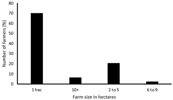 The results shows that most farmers (70.13%) had 1 hectare (Figure 1) and predominantly used their land for cultivating yellow maize (90.91%) (Figure 2).
