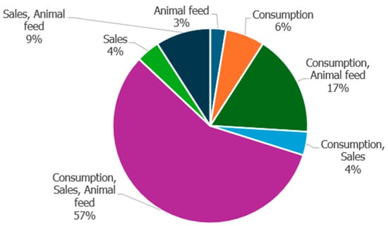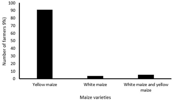 Farm size is another factor that may affect the productivity and growth of farmers, as in the current study, most farmers own small plots of land for farming with a farm size of 1 hectare, and primarily use their land for cultivating mostly yellow maize. Furthermore, most farmers produce and store yellow maize for human consumption, as a source of income, and for feeding livestock. These results are in consonance with those reported by Mdoda and Gidi [32], which demonstrate that the majority (60%) of smallholder farmers from the OR Tambo, Amathole, and Chris Hani Districts in ECP have their farm size ranging from 0.5 to 2.5 hectares and 50.6% of them are growing maize. Moreover, Sibanda et al. [33] reported that the majority (70.8%) of smallholder farmers preferred yellow maize to white maize. This can be attributed to the fact that yellow maize is multipurpose by feeding livestock, poultry, and being for human consumption, which makes it have a better market value [33,34]. This shows that maize has a multifunctional role in agriculture and significantly contributes to household food security [35].