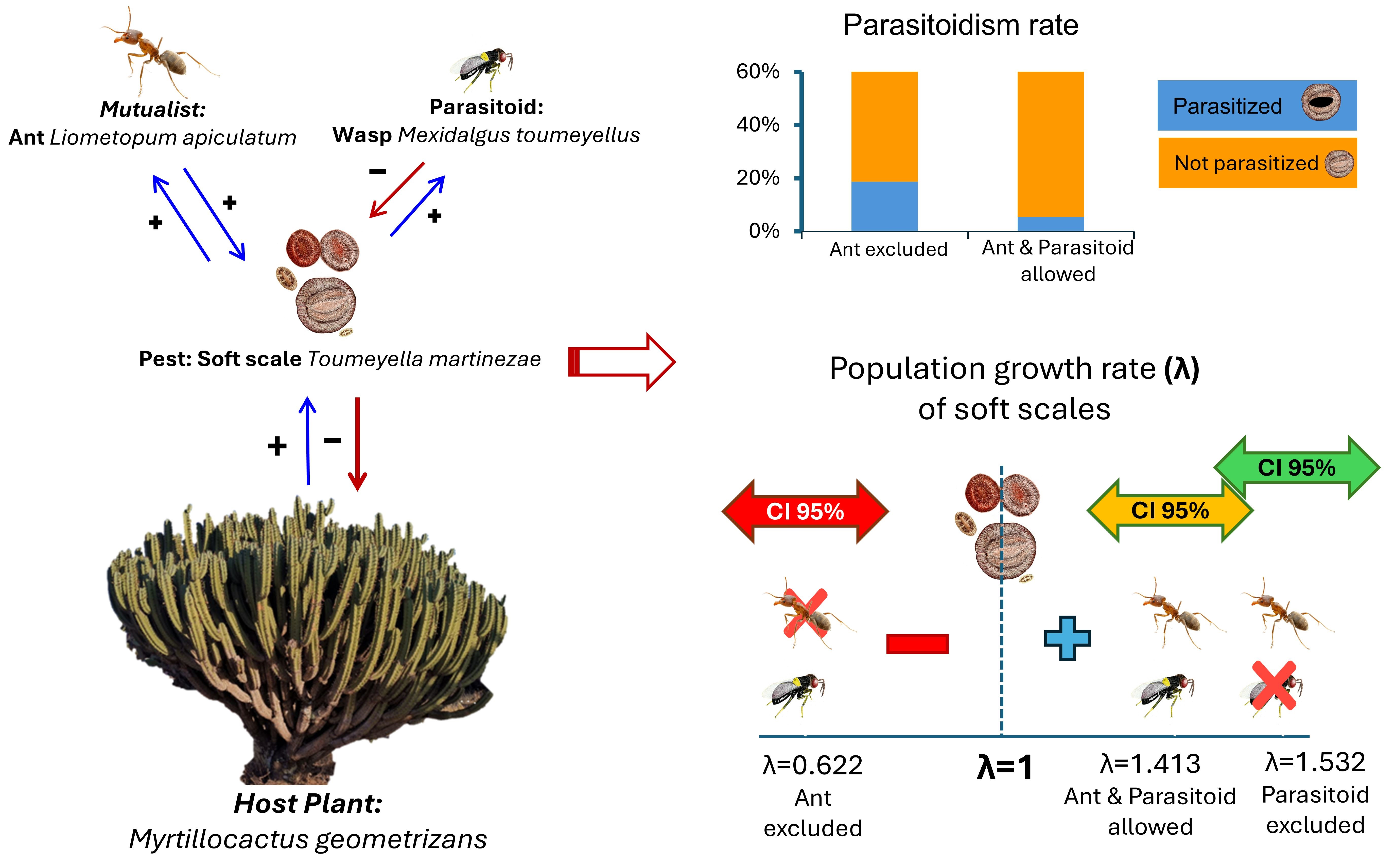 Callejas-Chavero A, Vargas-Mendoza CF, González-Villa H, Flores-Martínez A. Effects of Parasitism on the Population Growth of Toumeyella martinezae (Coccidae) in the Presence of Its Mutualistic Ant Liometopum apiculatum (Formicidae) in an Arid Region of Central Mexico. Insects. 2025; 16(10):1002. https://doi.org/10.3390/insects16101002