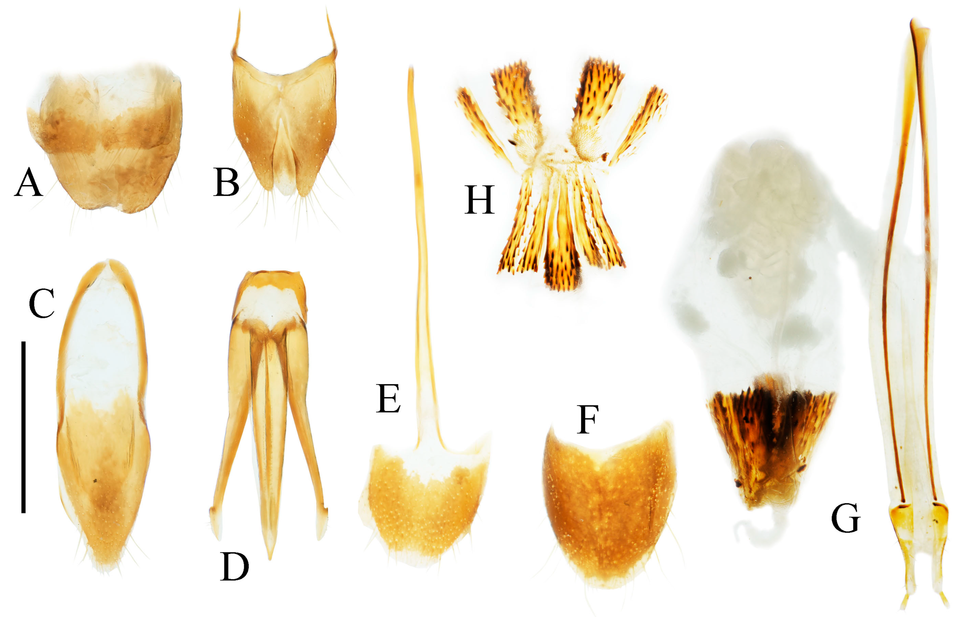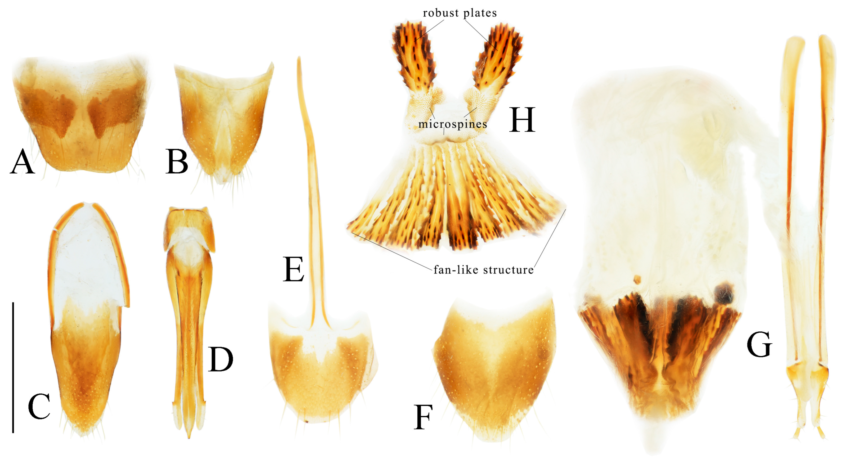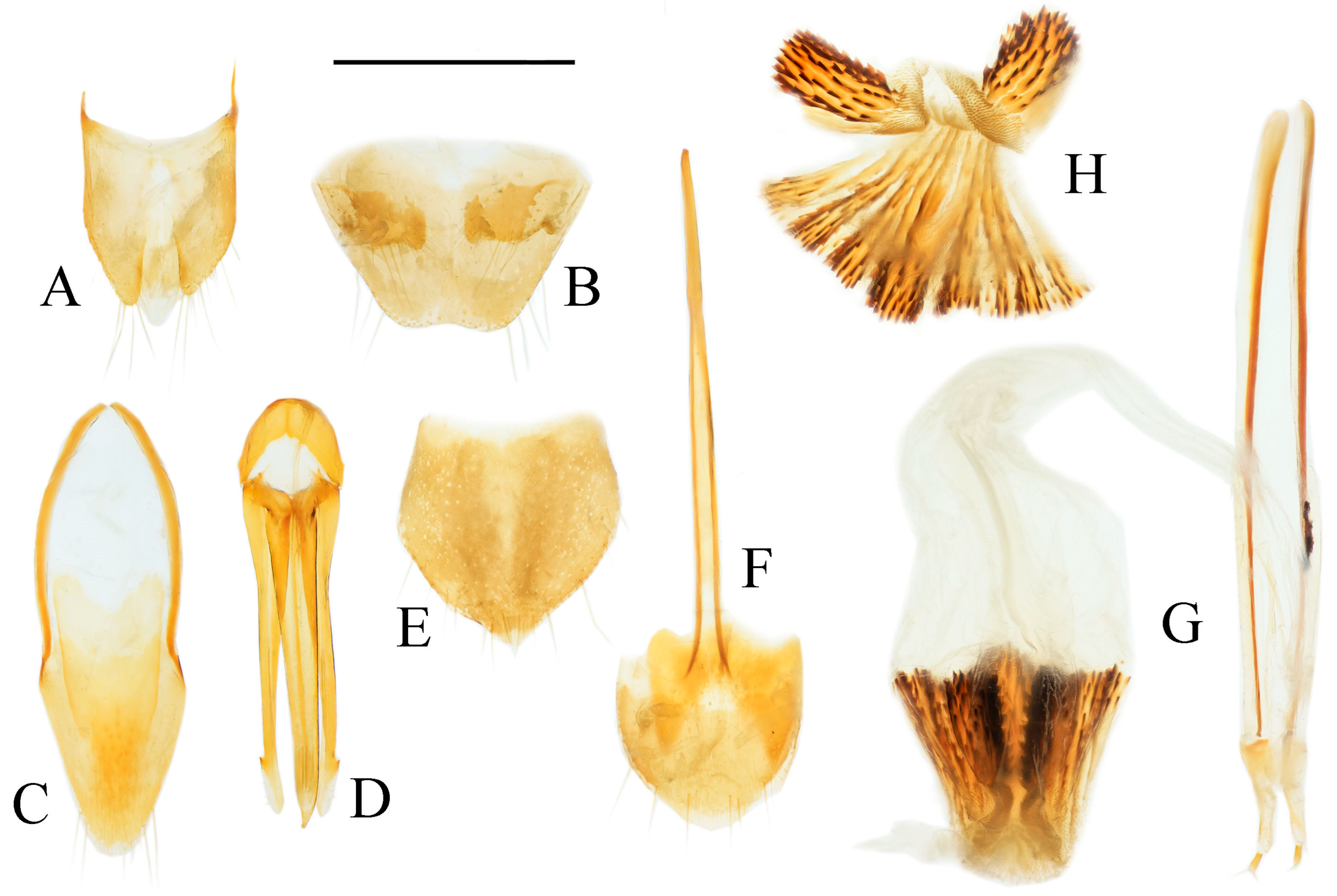 Figure 4F). Sternite VIII semioval; spiculum ventrale elongate, length equaling or up to 3 times of sternite VIII length (