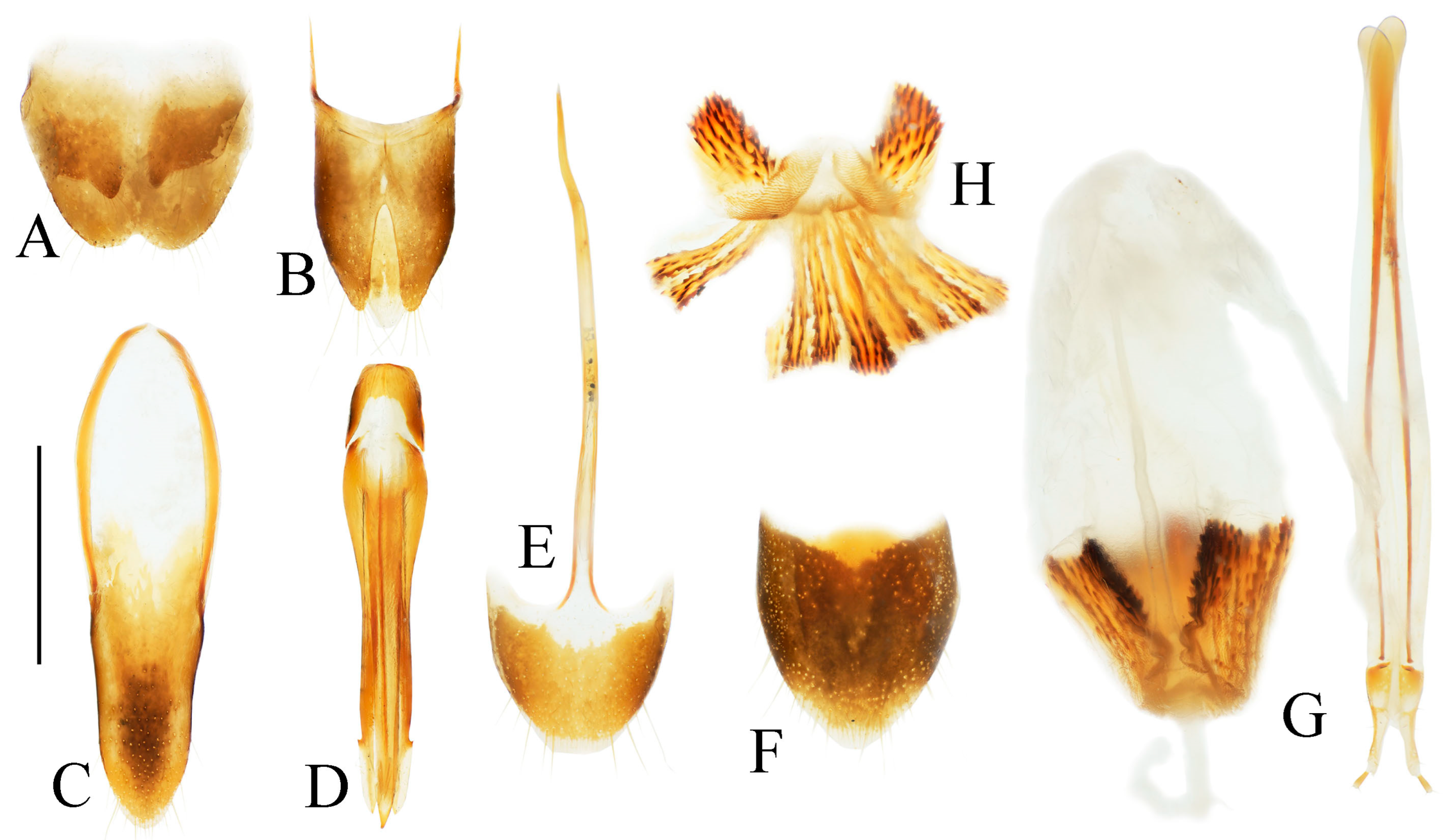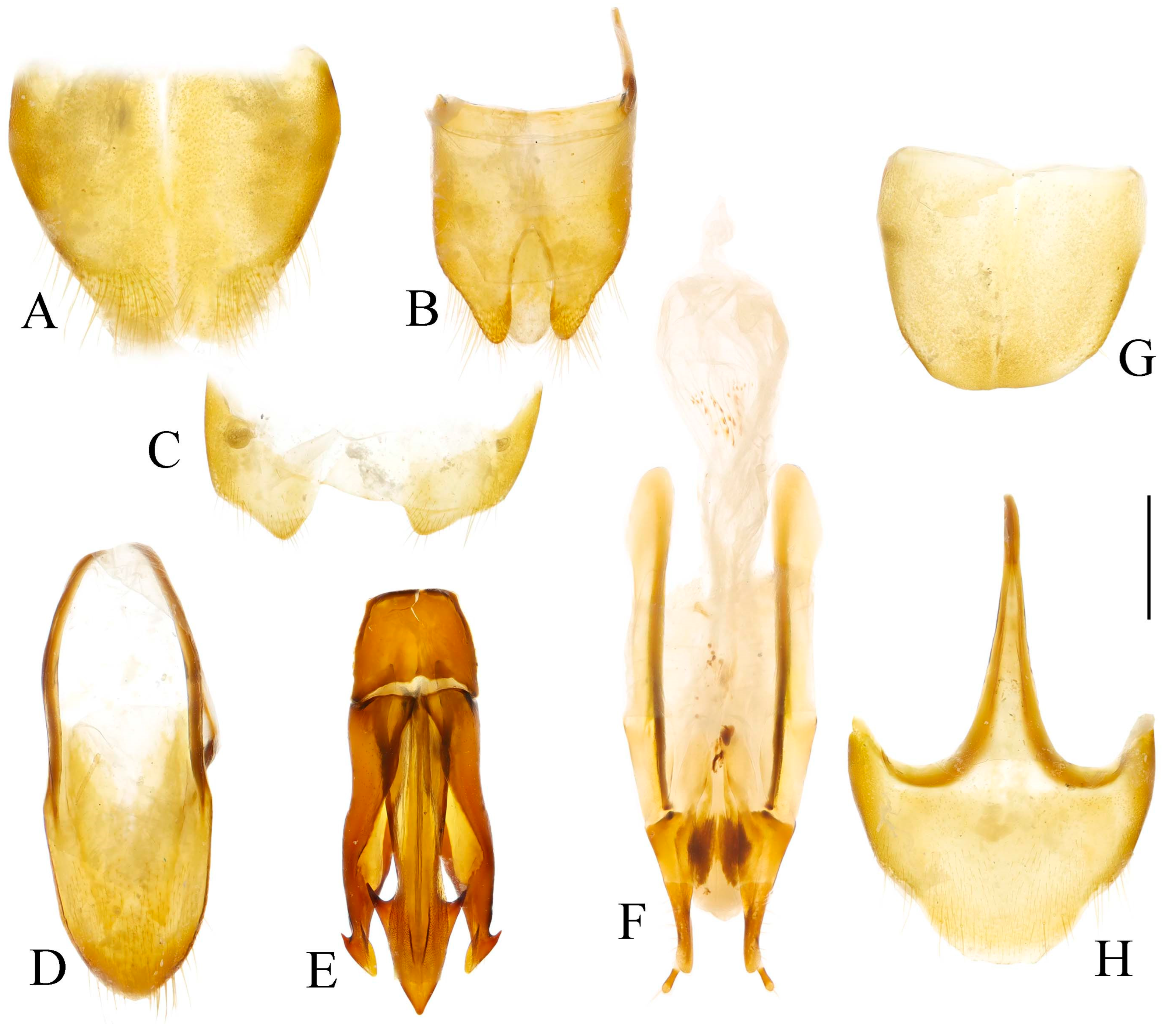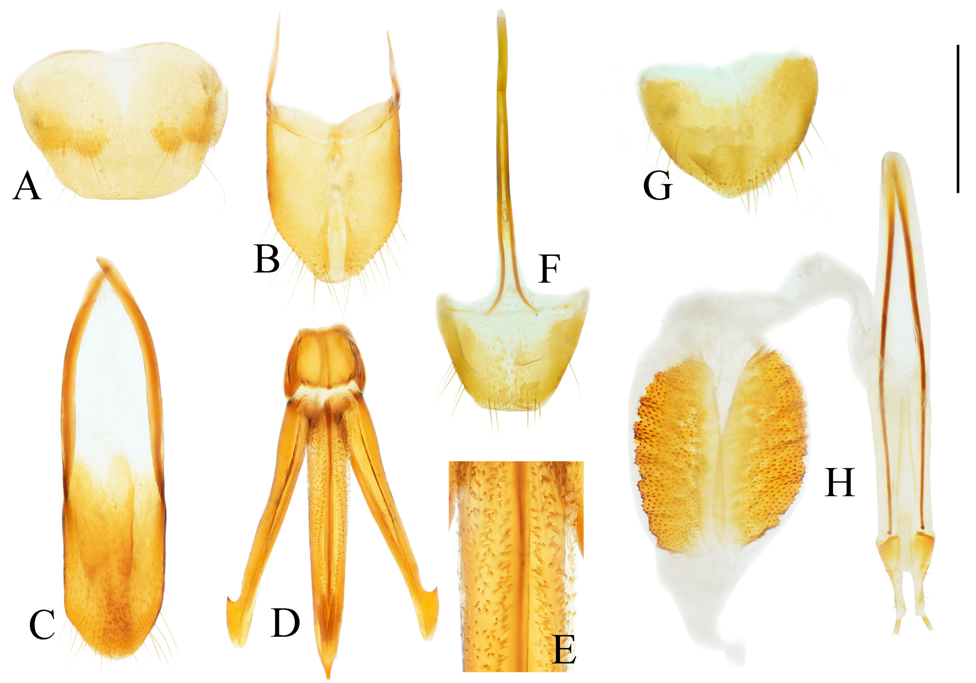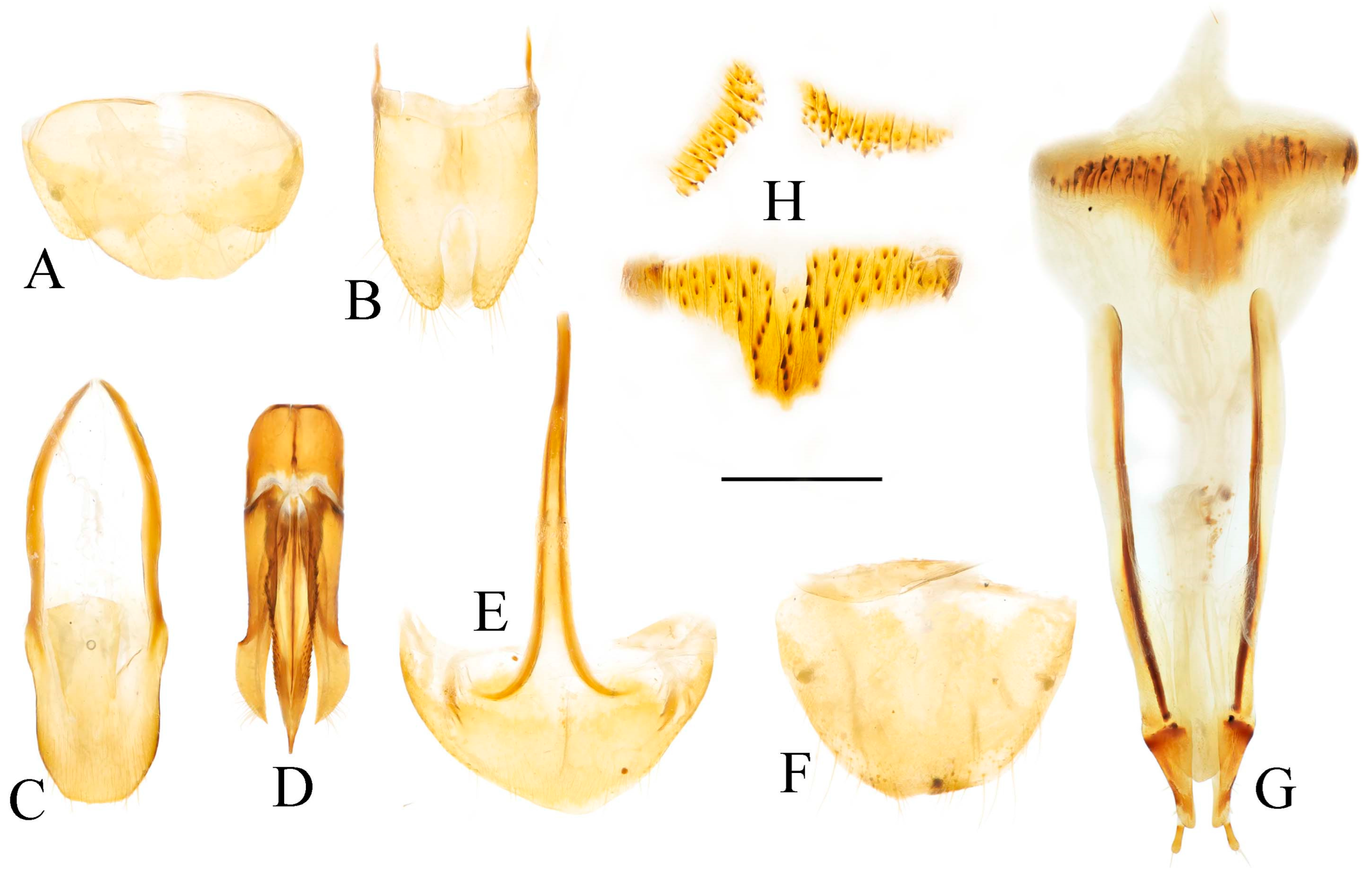 Figure 4F). Sternite VIII semioval; spiculum ventrale elongate, length equaling or up to 3 times of sternite VIII length (