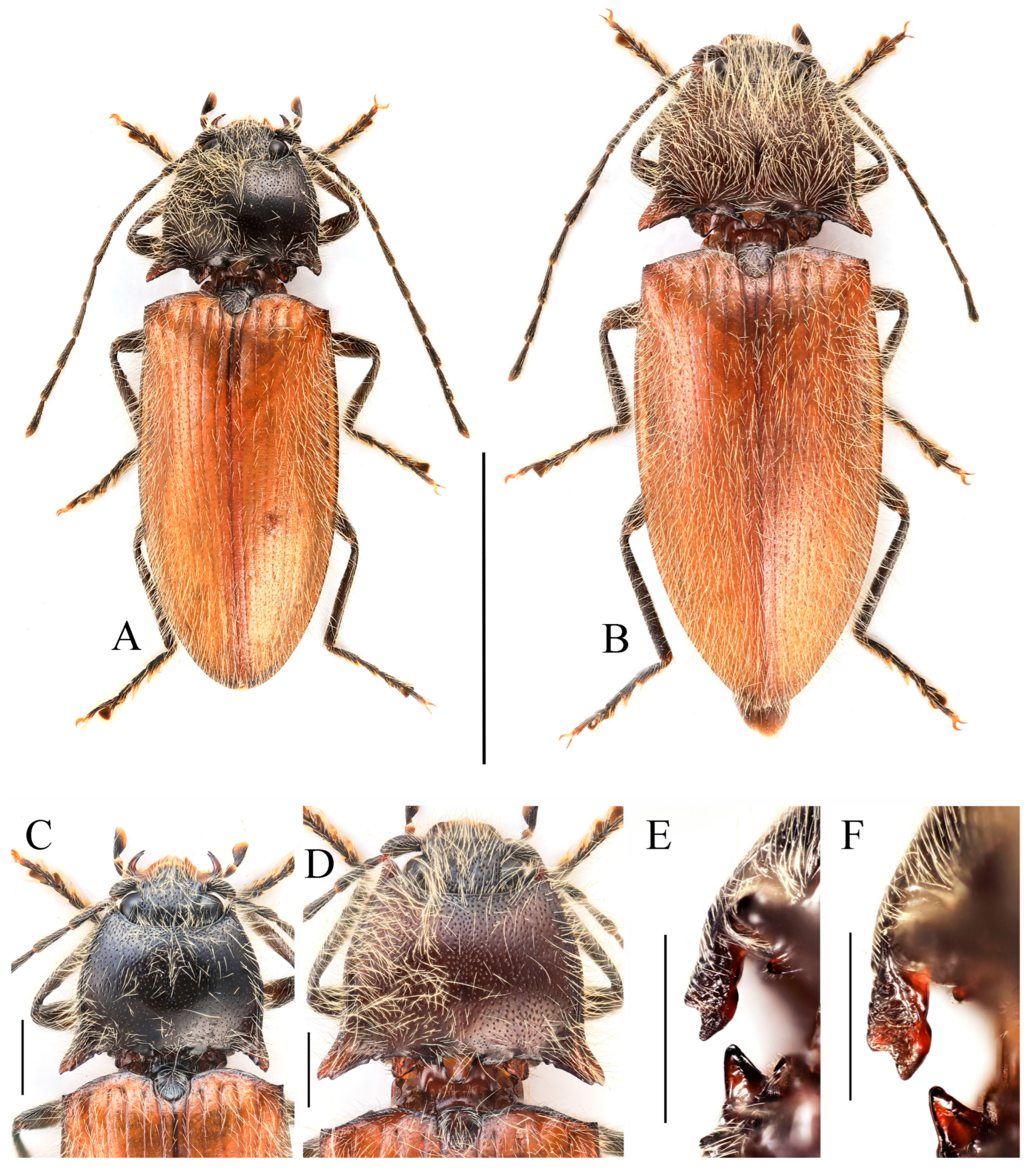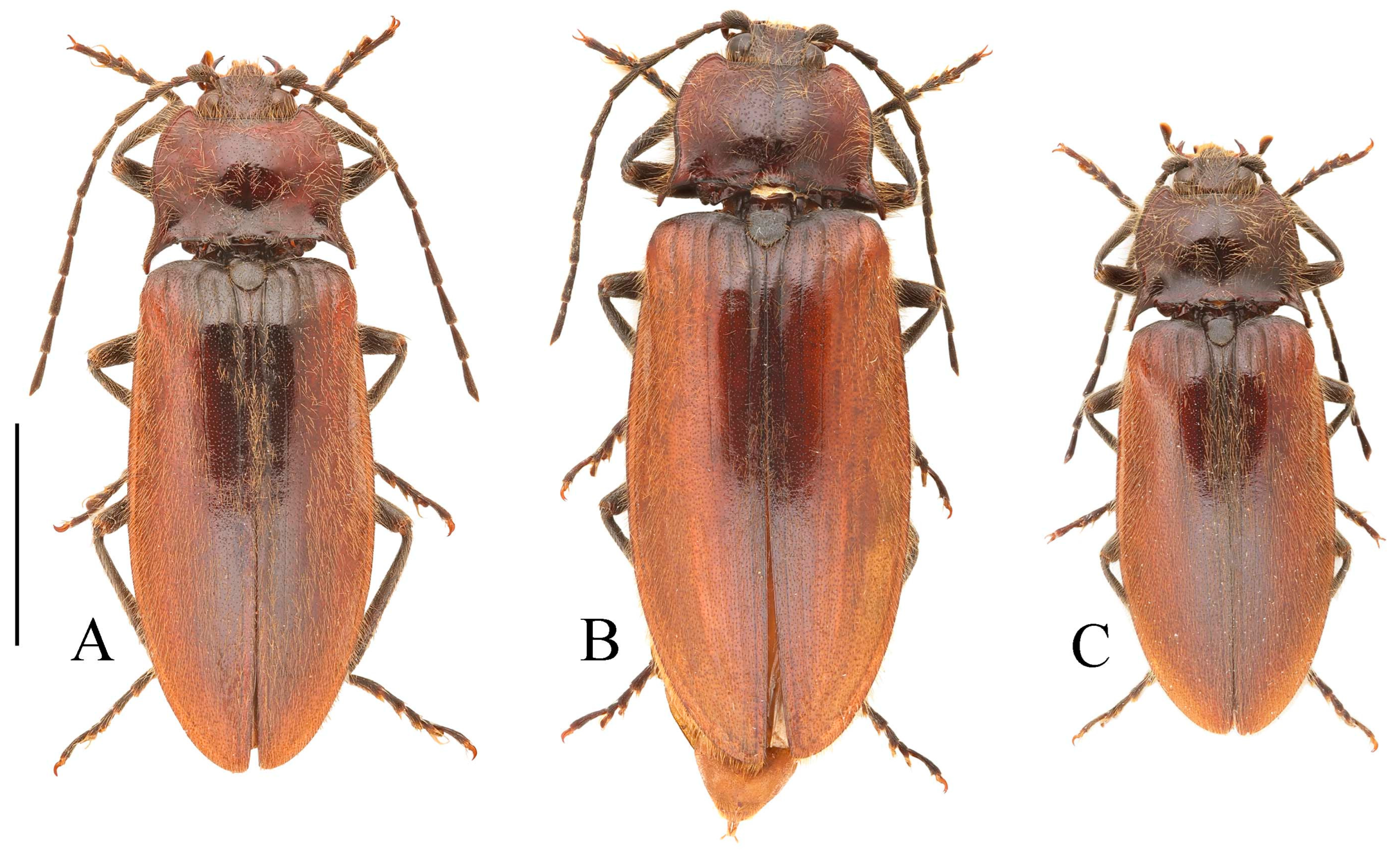 Description. Holotype, male: body length 9.8 mm; width 3.8 mm; antenna length 5.9 mm; pronotum length × width = 1.9 × 3.4 mm; elytra length 6.8 mm.