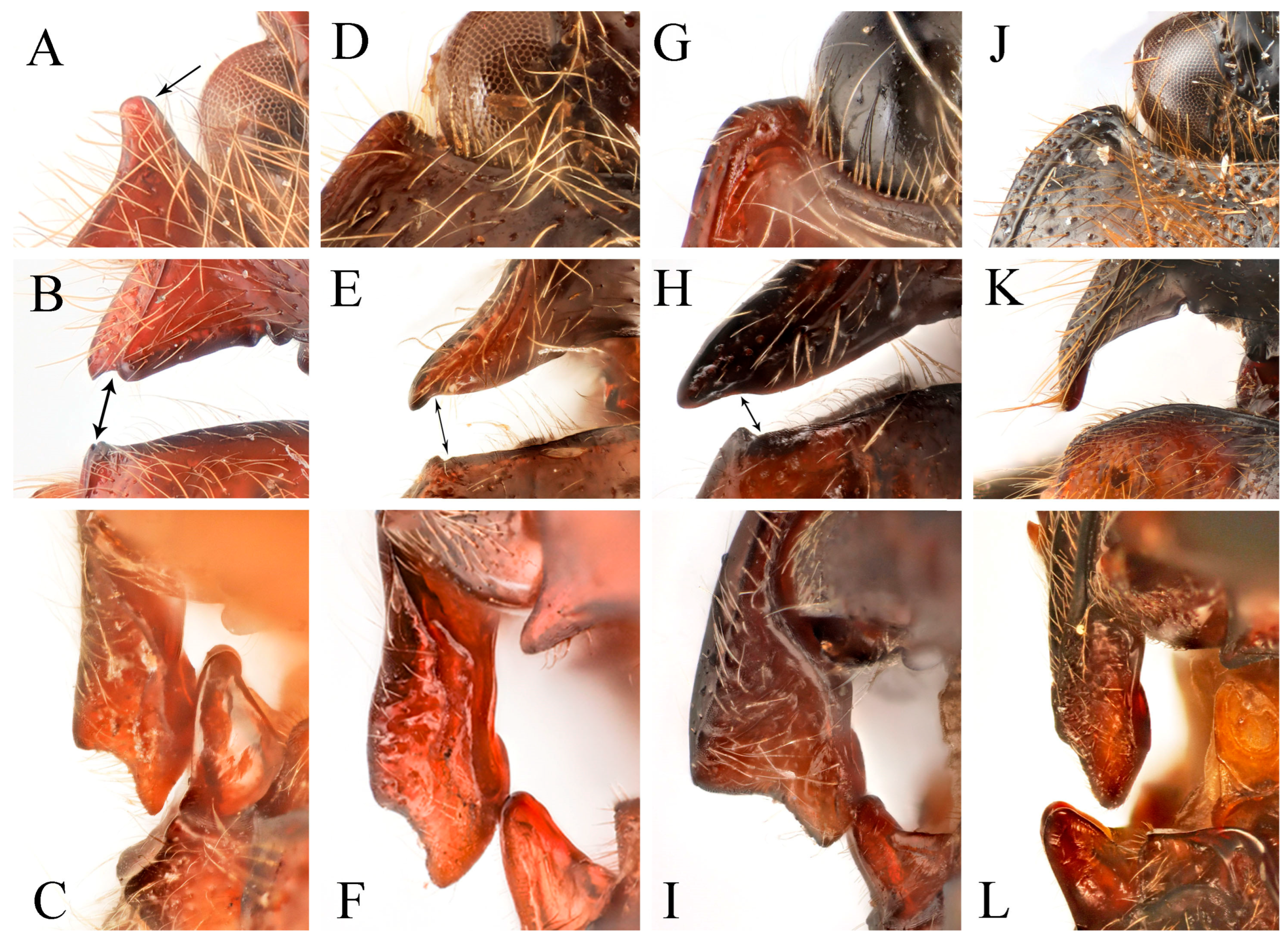 Figure 2J, left arrows). Tarsomeres 3–4 lobed, lobe of tarsomere 4 larger than that of tarsomere 3 (