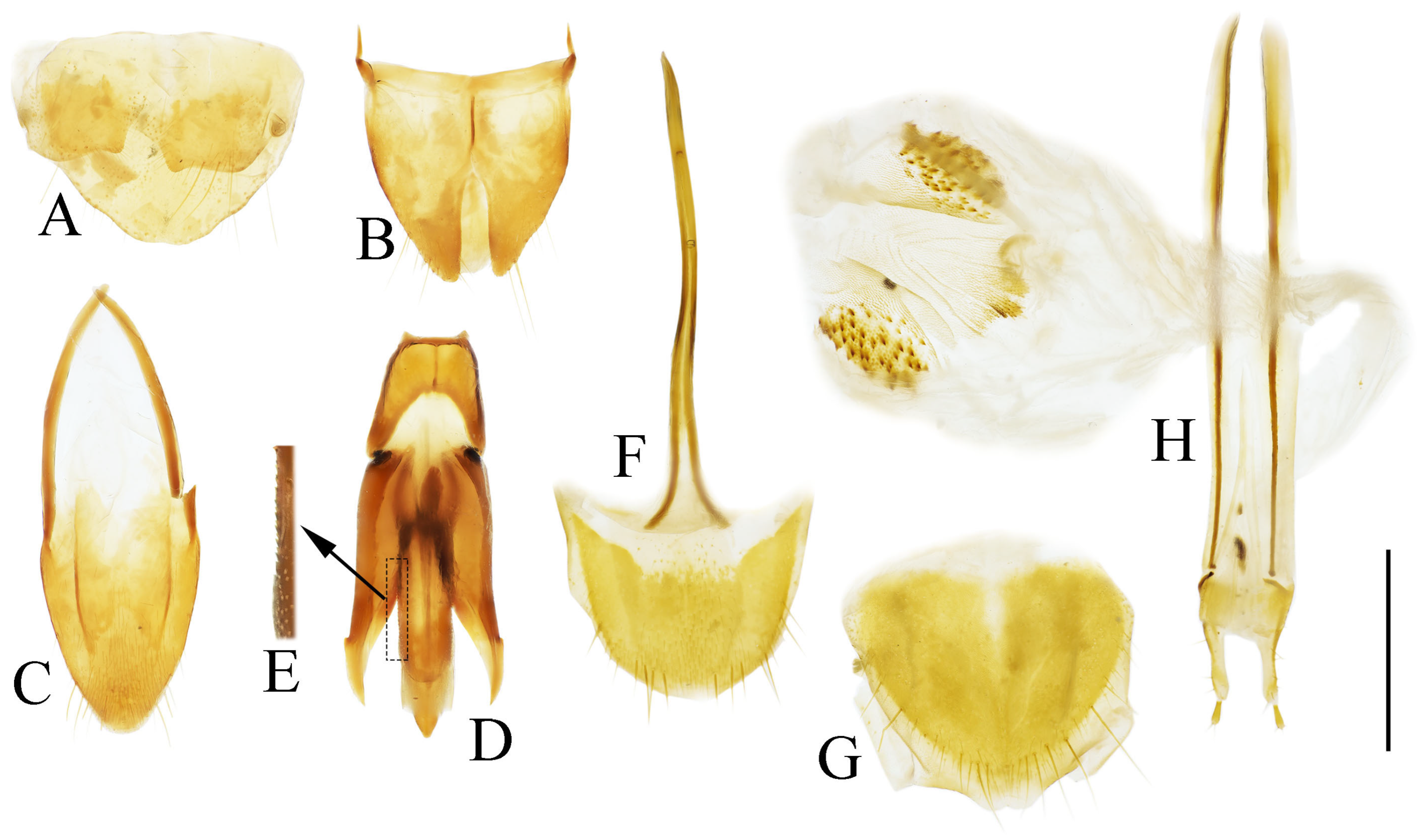 Figure 4E). Ovipositor elongate; coxite apically tapered; styli distinct, cylindrical, inserted subapically (