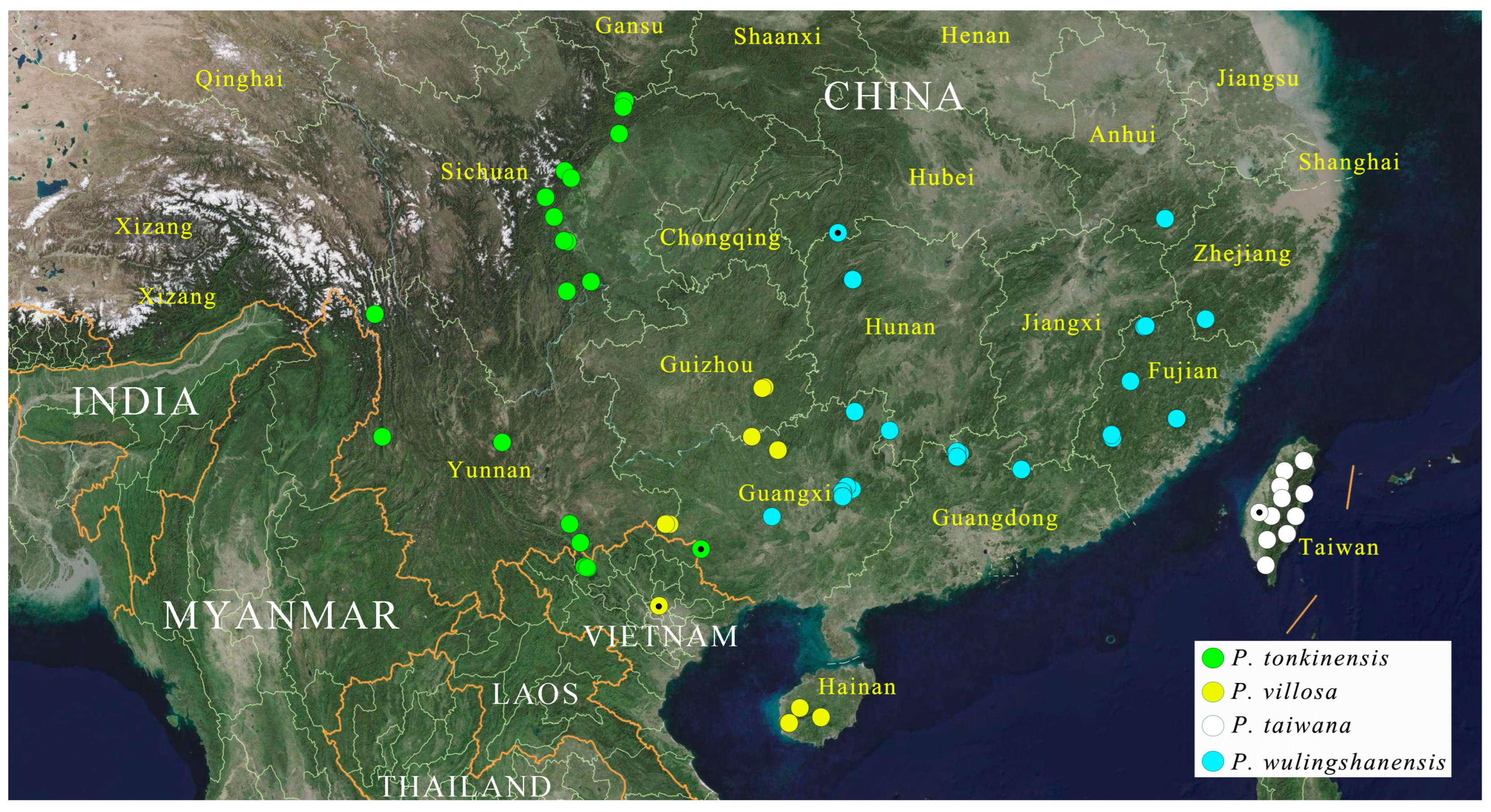 Type locality. China: N Hunan: Wuling Shan, Zhangjiajie, 700 m, 29.4 N, 110.4 E [湖南武陵山张家界].