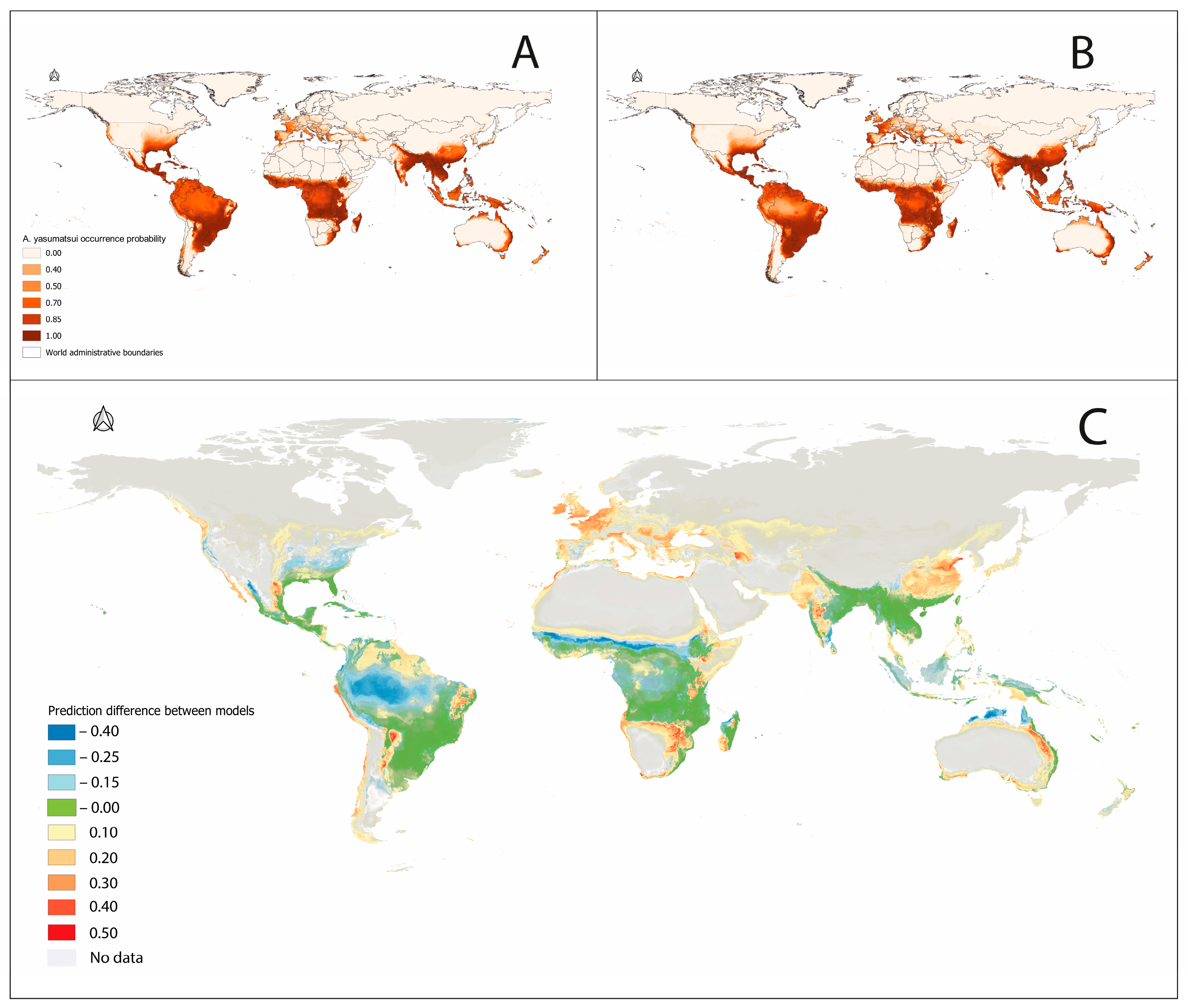 APA StyleValdés-Díaz, S., Tuñón, R., Castillo, D., Sanchez, A., Virola-Vasquez, B., Corro, P. E., Serrano-Peraza, F., Zachrisson, B., Loaiza, J., Chang, R., & Chaves, L. F. (2025). Ensemble Distribution Modeling of the Globally Invasive Asian Cycad Scale, Aulacaspis yasumatsui Takagi, 1977 (Hemiptera: Diaspididae). Insects, 16(10), 1016. https://doi.org/10.3390/insects16101016