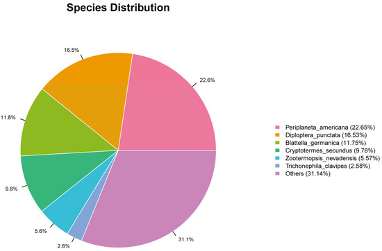 Periplaneta americana (22.65%), indicating strong genetic homology between these two cockroach species. Although both cockroaches and termites belong to the order