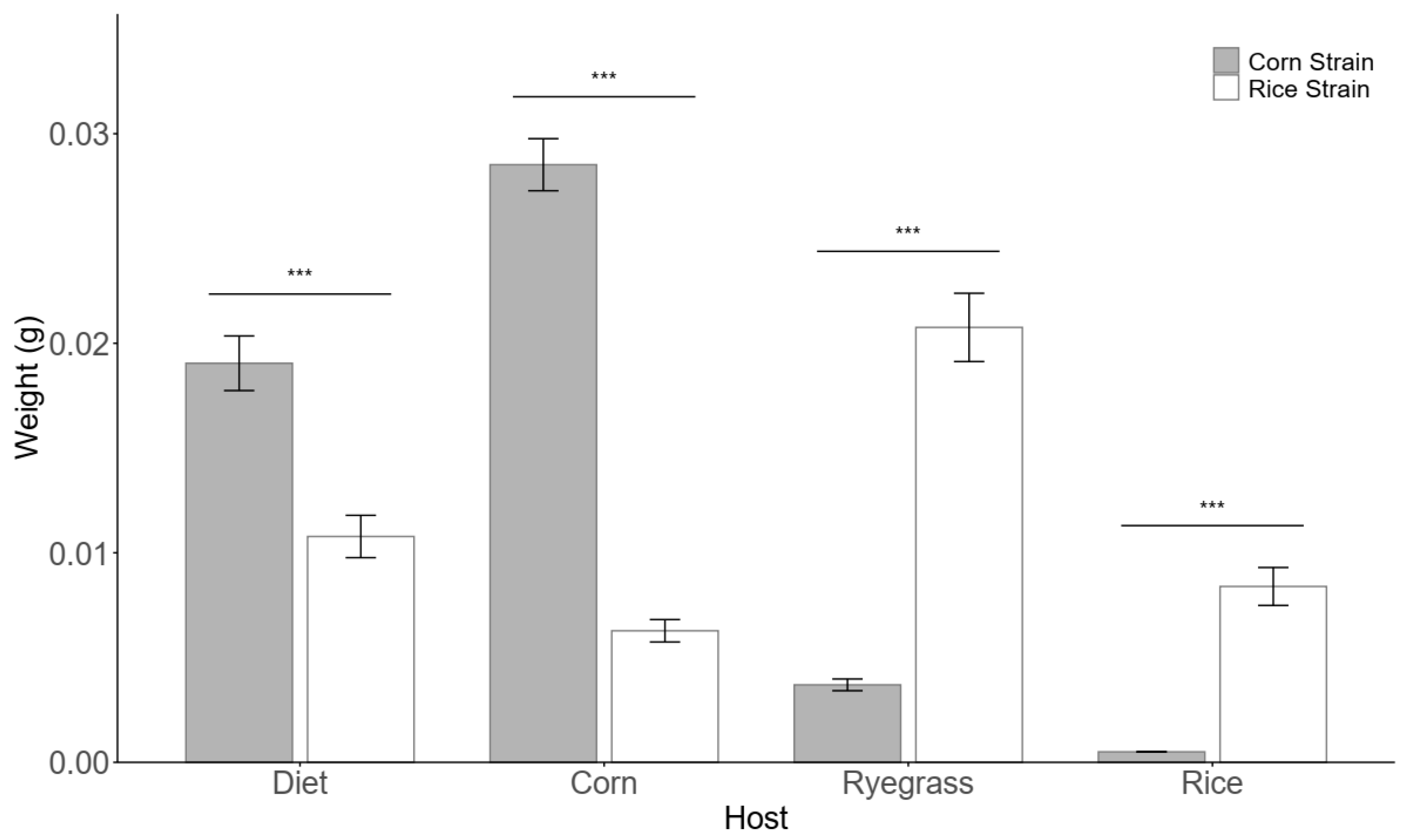 - Specialization Hypothesis: The CS demonstrates optimal growth and development specifically on its preferred host (corn), with significantly reduced performance on alternative hosts, reflecting evolutionary specialization and narrower physiological adaptation.