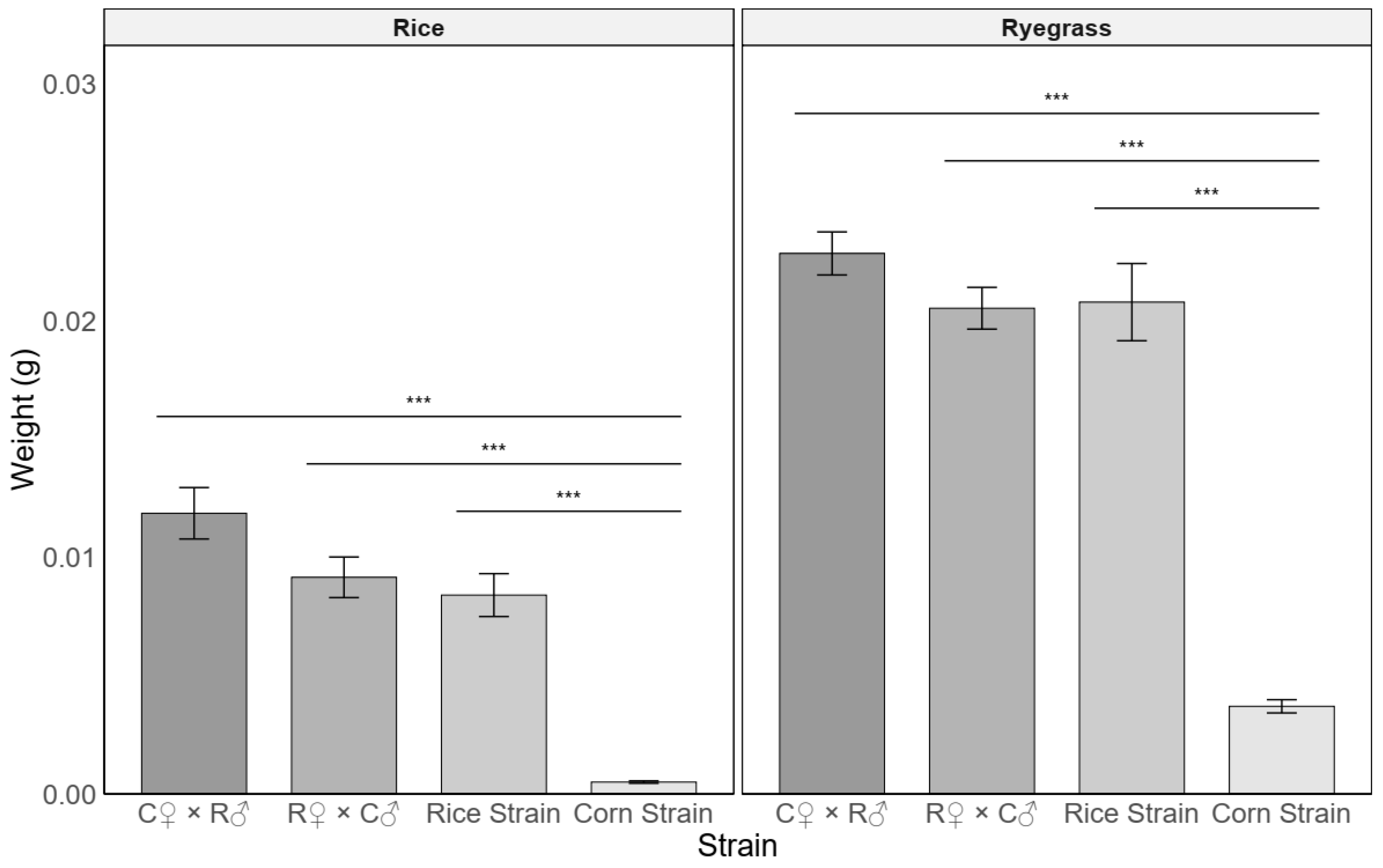 - Host Range Hypothesis: The RS possesses superior dietary adaptability compared to the CS, particularly manifesting as enhanced growth performance on non-preferred hosts (rice and ryegrass), attributable to more efficient detoxification metabolic pathways.