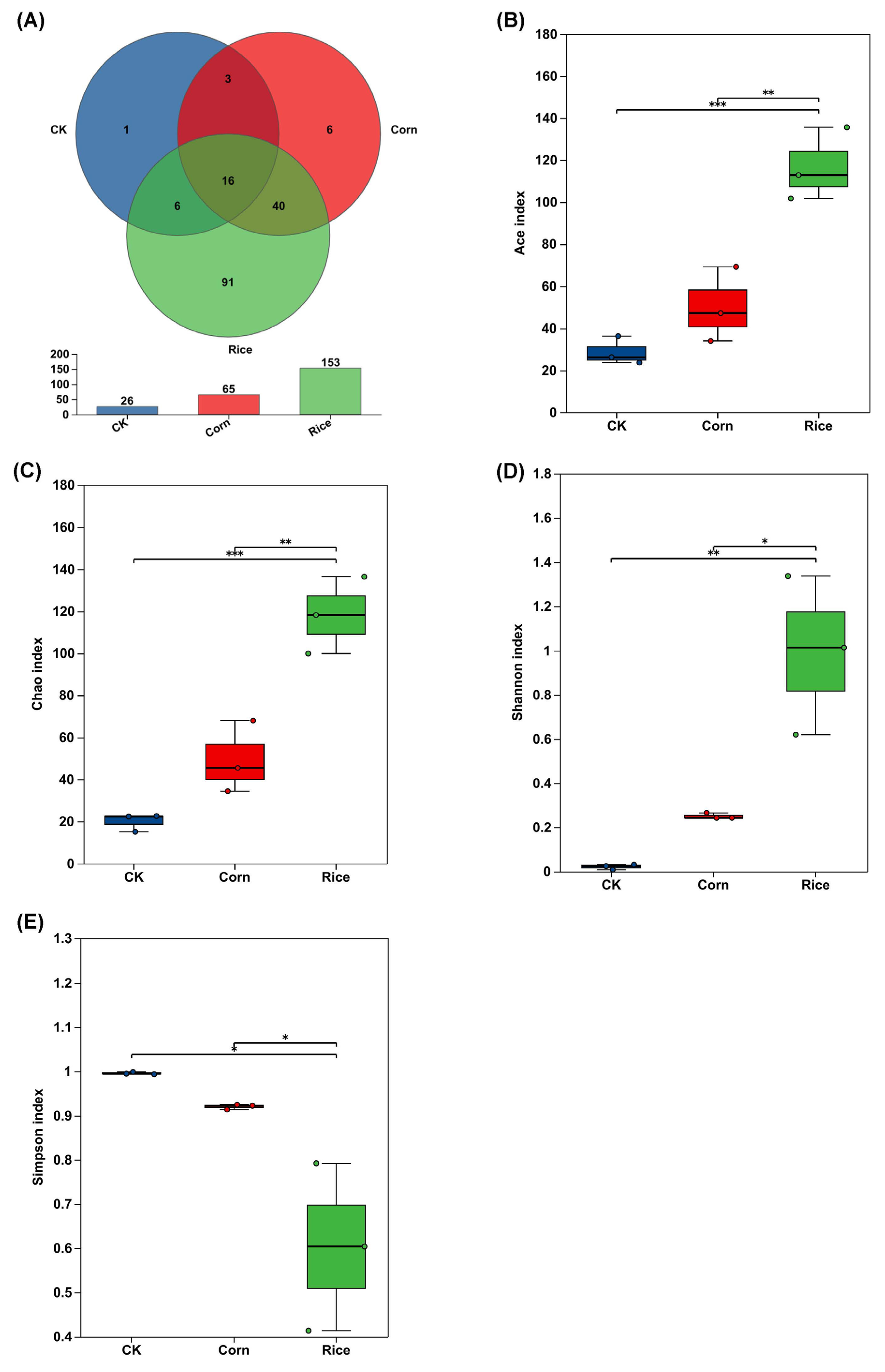 - Schloss, P.D.; Westcott, S.L.; Ryabin, T.; Hall, J.R.; Hartmann, M.; Hollister, E.B.; Lesniewski, R.A.; Oakley, B.B.; Parks, D.H.; Robinson, C.J.; et al. Introducing mothur: Open-source, platform-independent, community-supported software for describing and comparing microbial communities. Appl. Environ. Microb. 2009, 75, 7537–7541. [Google Scholar] [CrossRef]