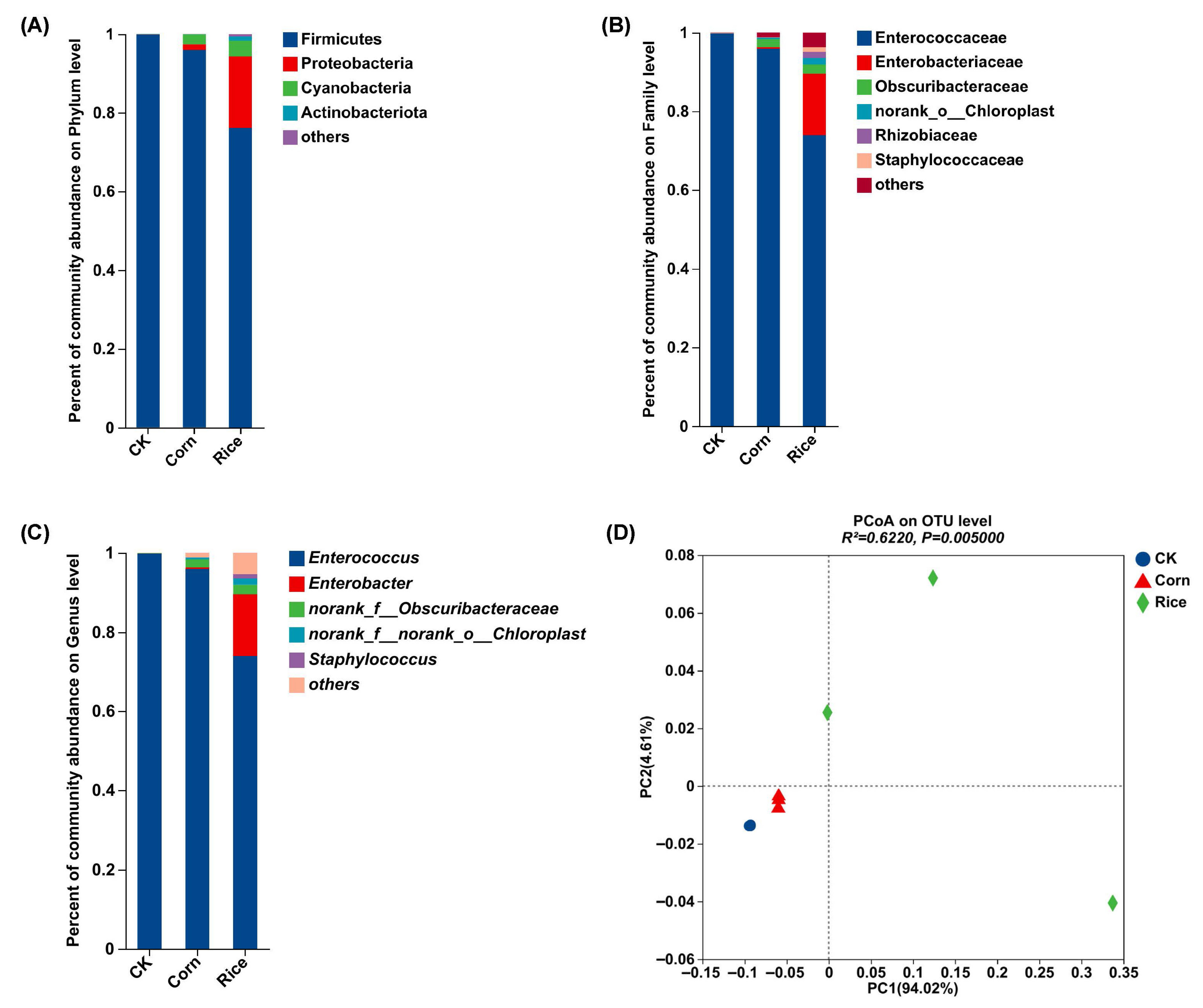 - Chen, Y.P.; Li, Y.H.; Sun, Z.X.; Du, E.W.; Lu, Z.H.; Li, H.; Gui, F.R. Effects of host plants on bacterial community structure in larvae midgut of Spodoptera frugiperda. Insects 2022, 13, 373. [Google Scholar] [CrossRef]