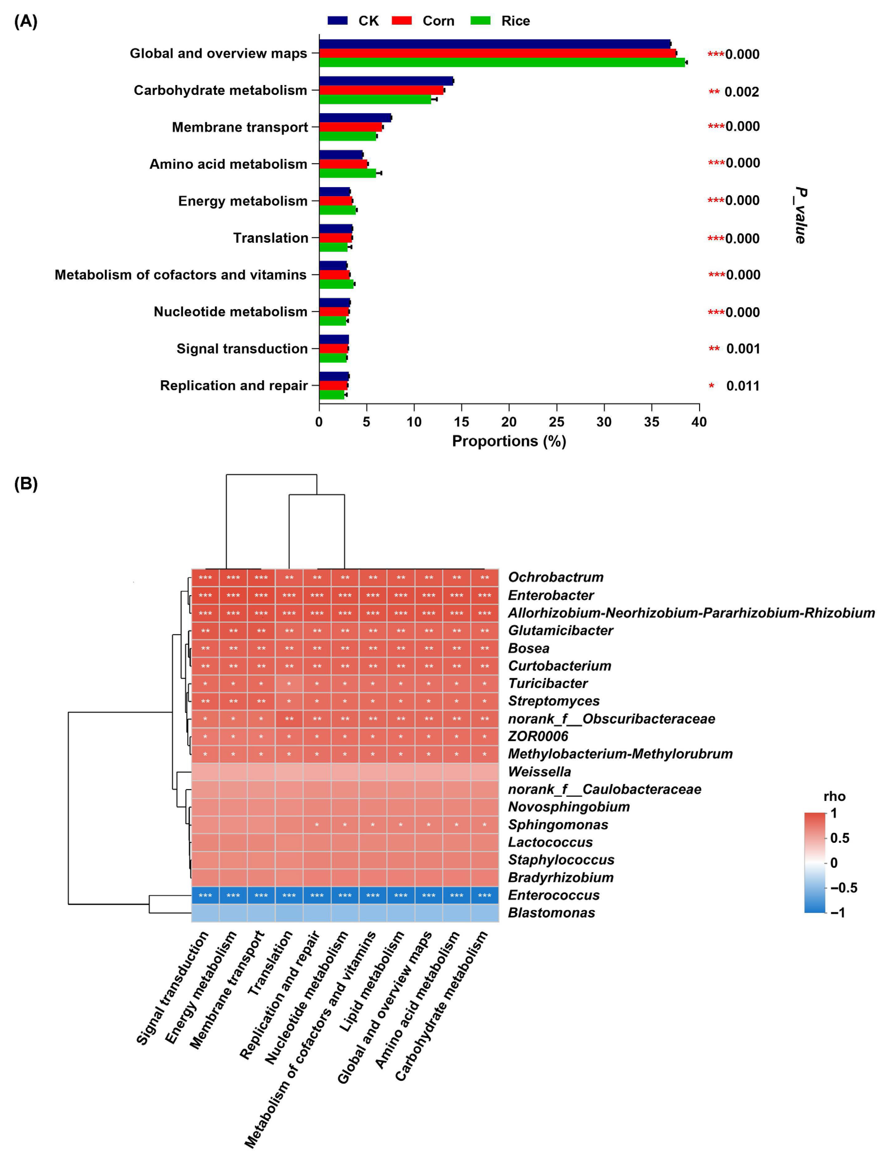 3.3. Functional Predictions of Gut Microbial Groups in S. frugiperda