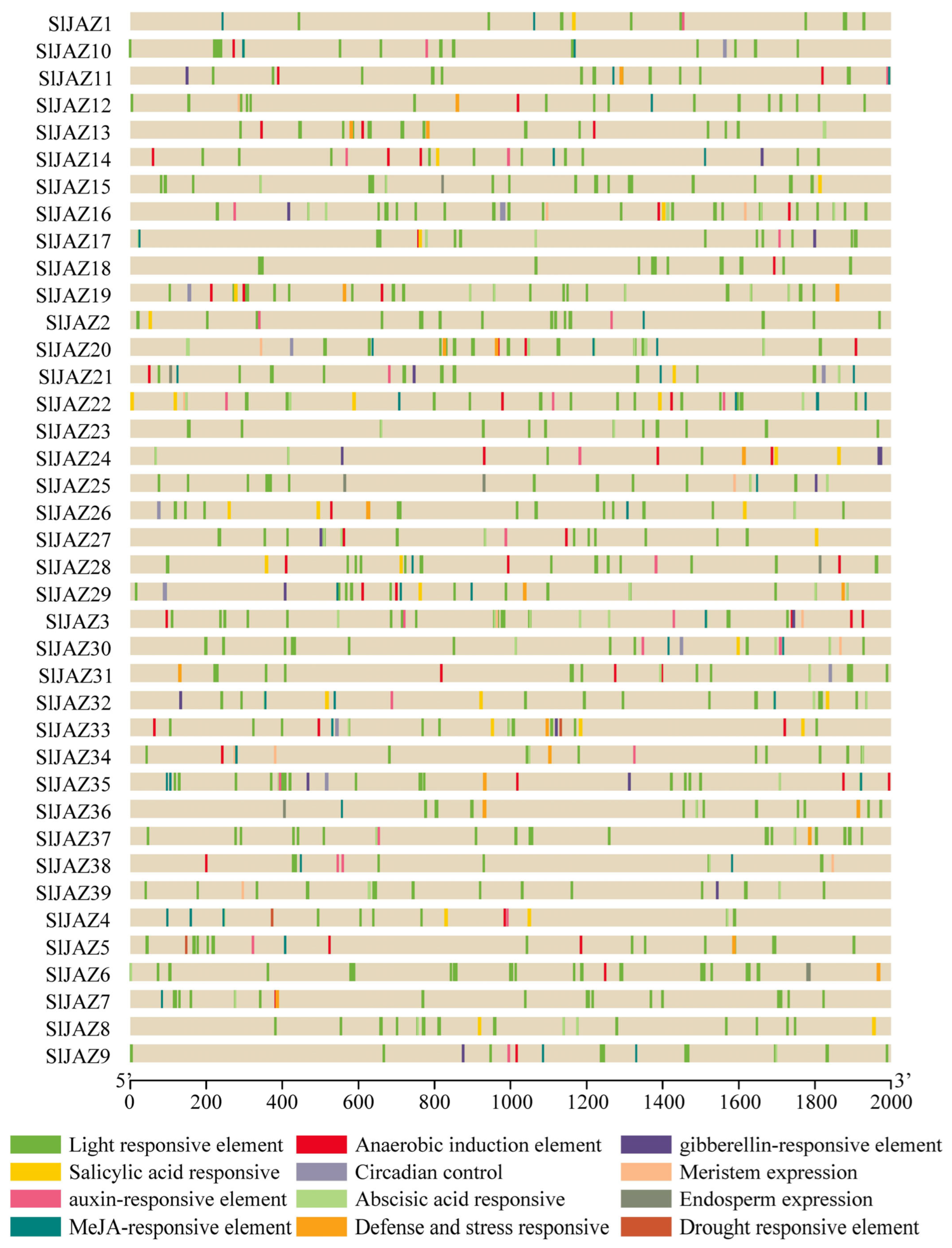 Figure 5. Cis-regulatory elements in promoter regions of JAZ genes in S. lycopersicum.
