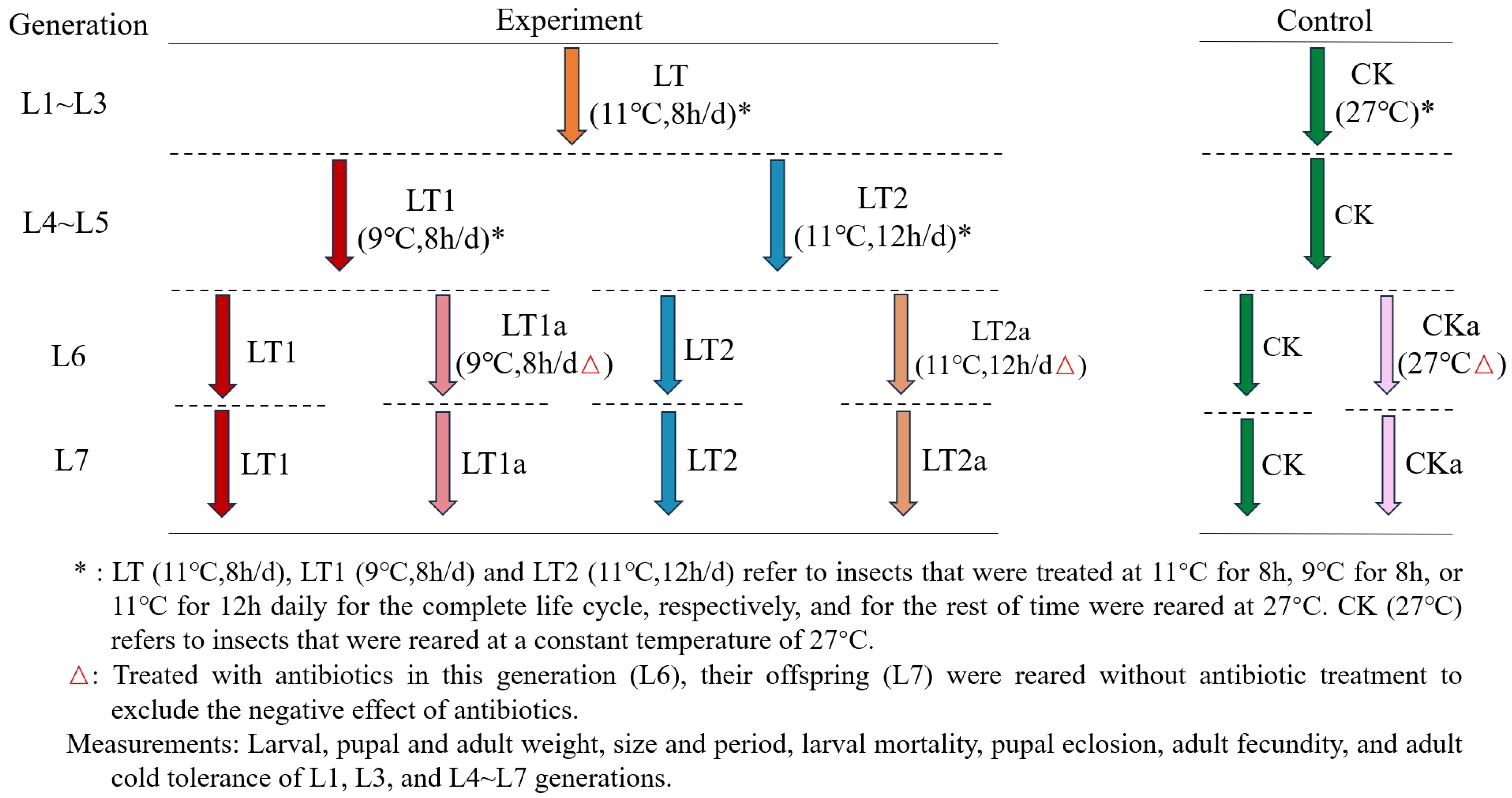 Song, Y.; Yu, G.-Y.; Gao, W.; Mai, Y.-T.; Xu, J.; Fu, W.; Zhang, Z.-X. Transgenerational Cold Acclimation and Contribution of Gut Bacteria in Spodoptera frugiperda. Insects 2025, 16, 1052. https://doi.org/10.3390/insects16101052