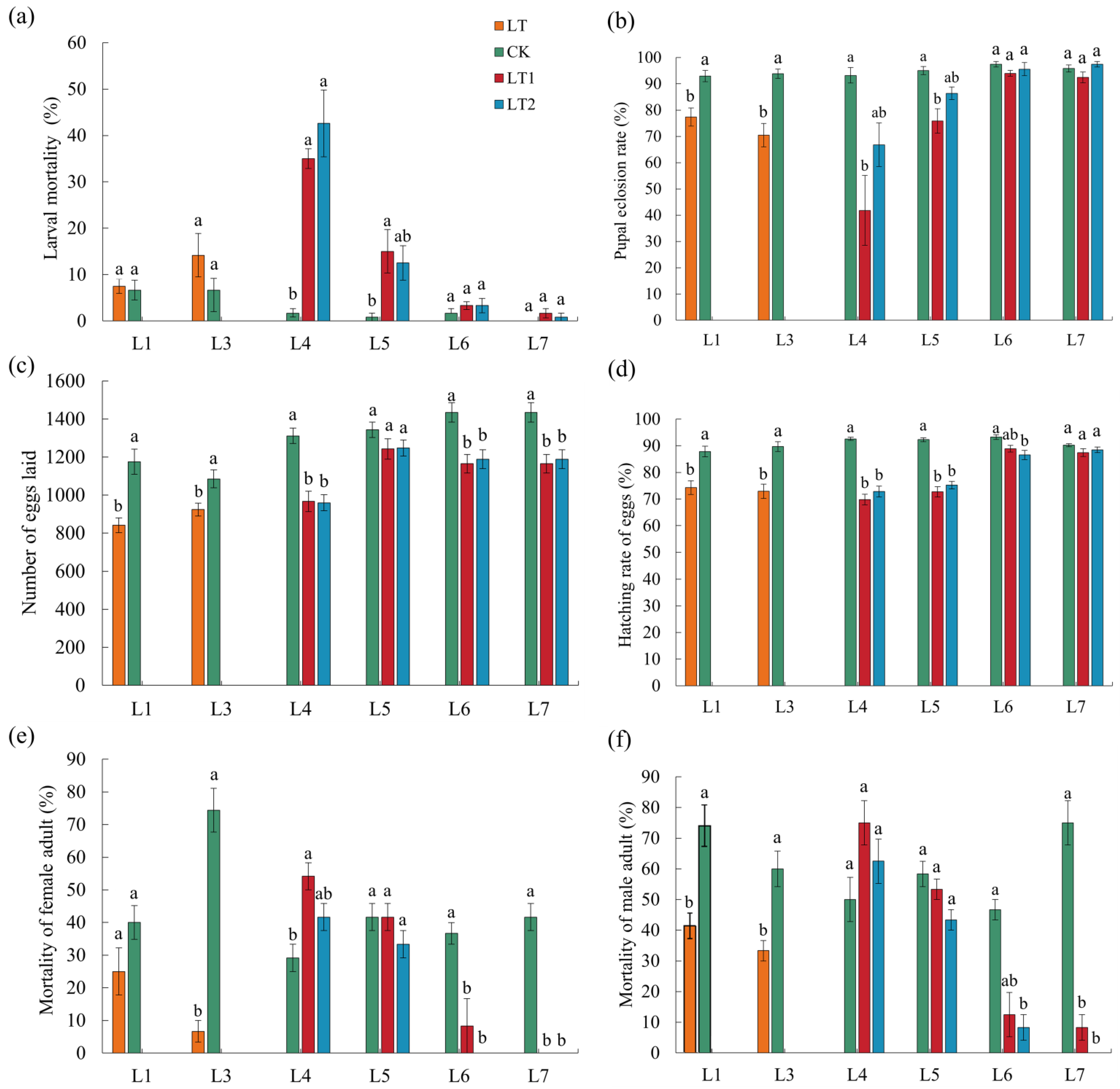 - Fu, Y.; Zhang, L.-Y.; Zhao, Q.-Y.; Fu, D.-Y.; Yu, H.; Xu, J.; Yang, S. Antibiotics ingestion altered the composition of gut microbes and affected the development and reproduction of the fall armyworm. J. Pest. Sci. 2024, 97, 2187–2201. [Google Scholar] [CrossRef]