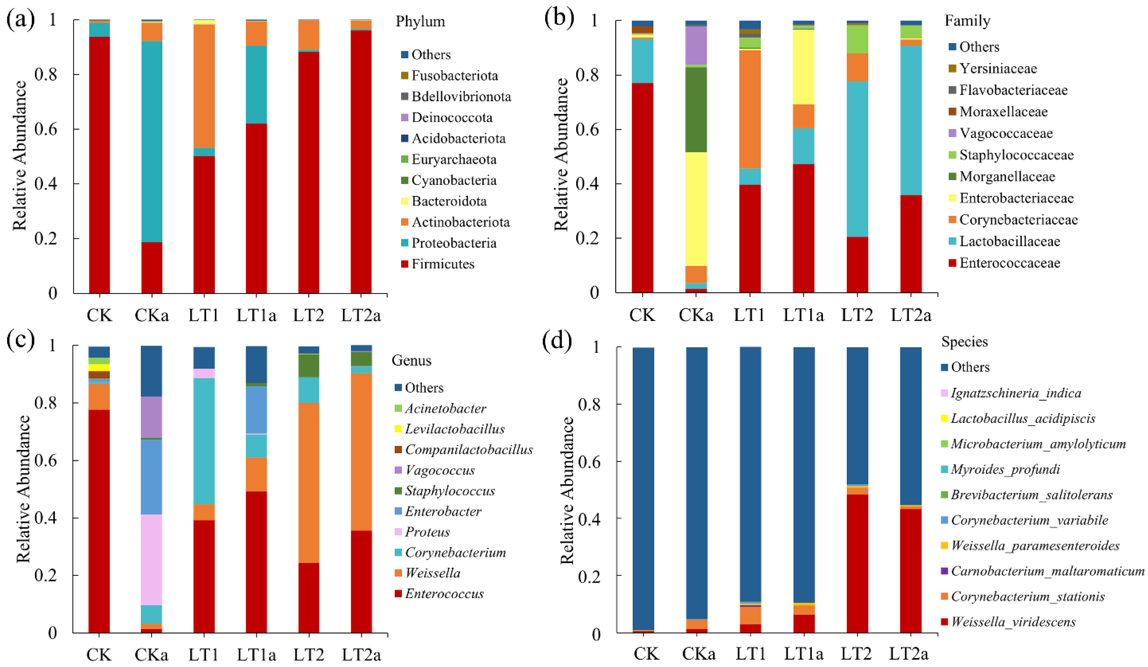 3.3.3. Taxonomy Assignment and Abundance Analysis
