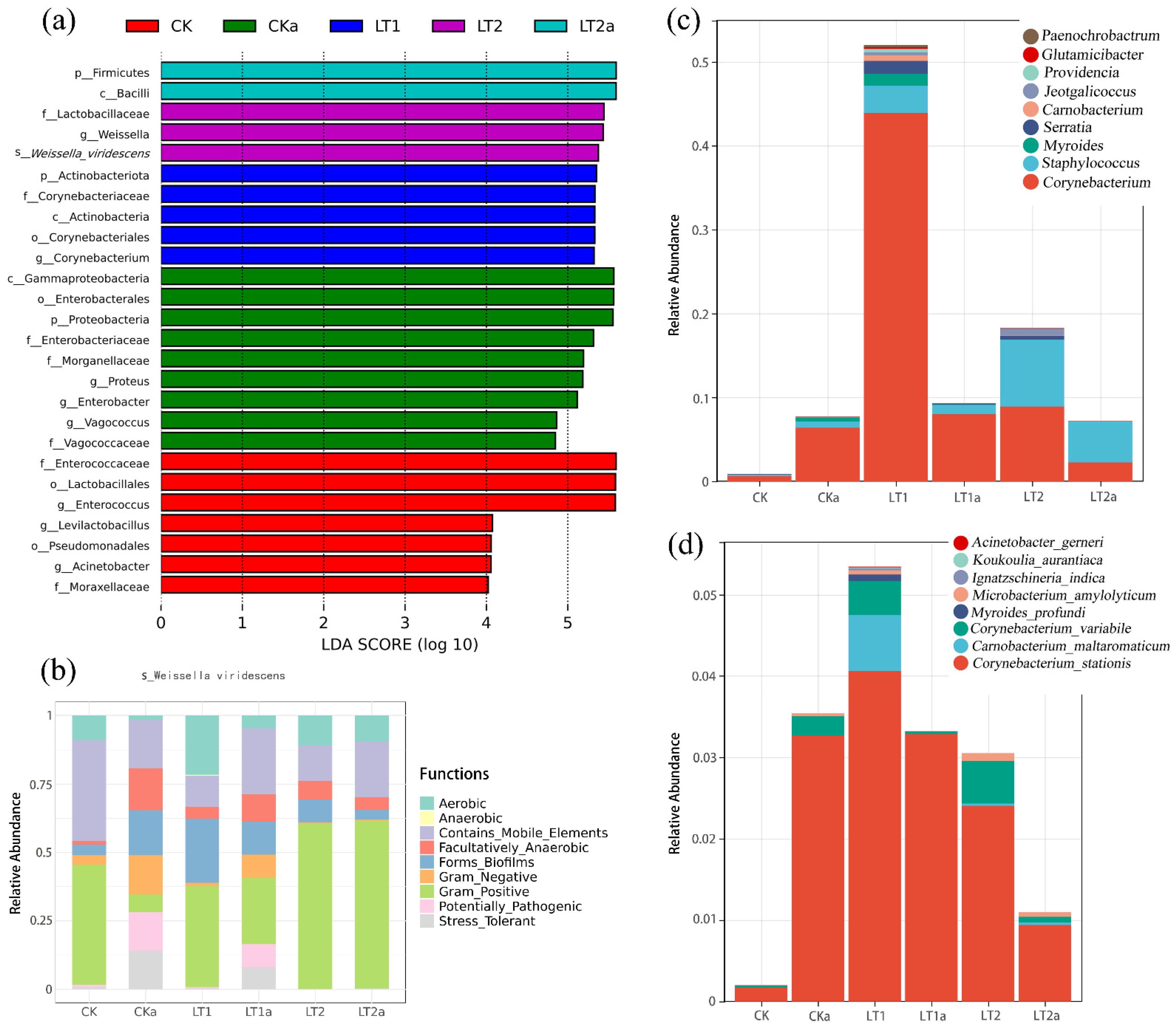 3.3.5. Differential Analysis and References-Based Functional Annotation on the Genus and Species Levels