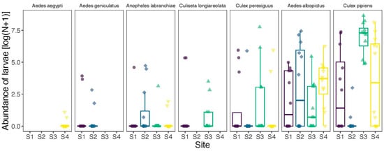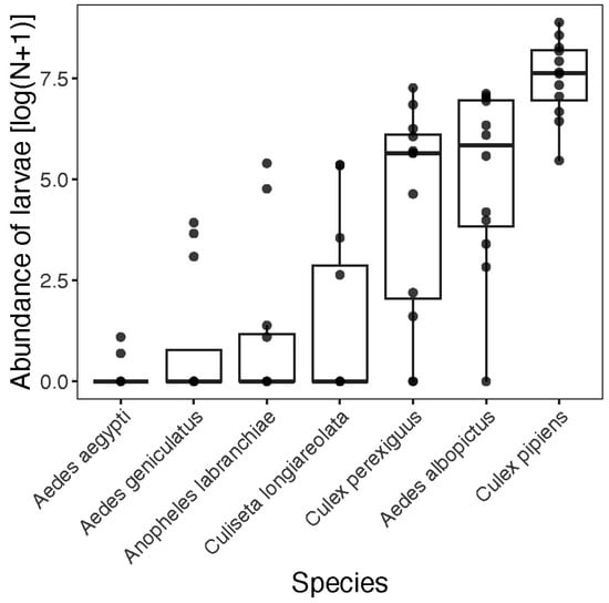 - Shittu, R.A.; Thomas, S.M.; Roiz, D.; Ruiz, S.; Figuerola, J.; Beierkuhnlein, C. Modeling the effects of species associations and abiotic parameters on the abundance of mosquito species in a Mediterranean wetland. Wetl. Ecol. Manag. 2024, 32, 381–395. [Google Scholar] [CrossRef]