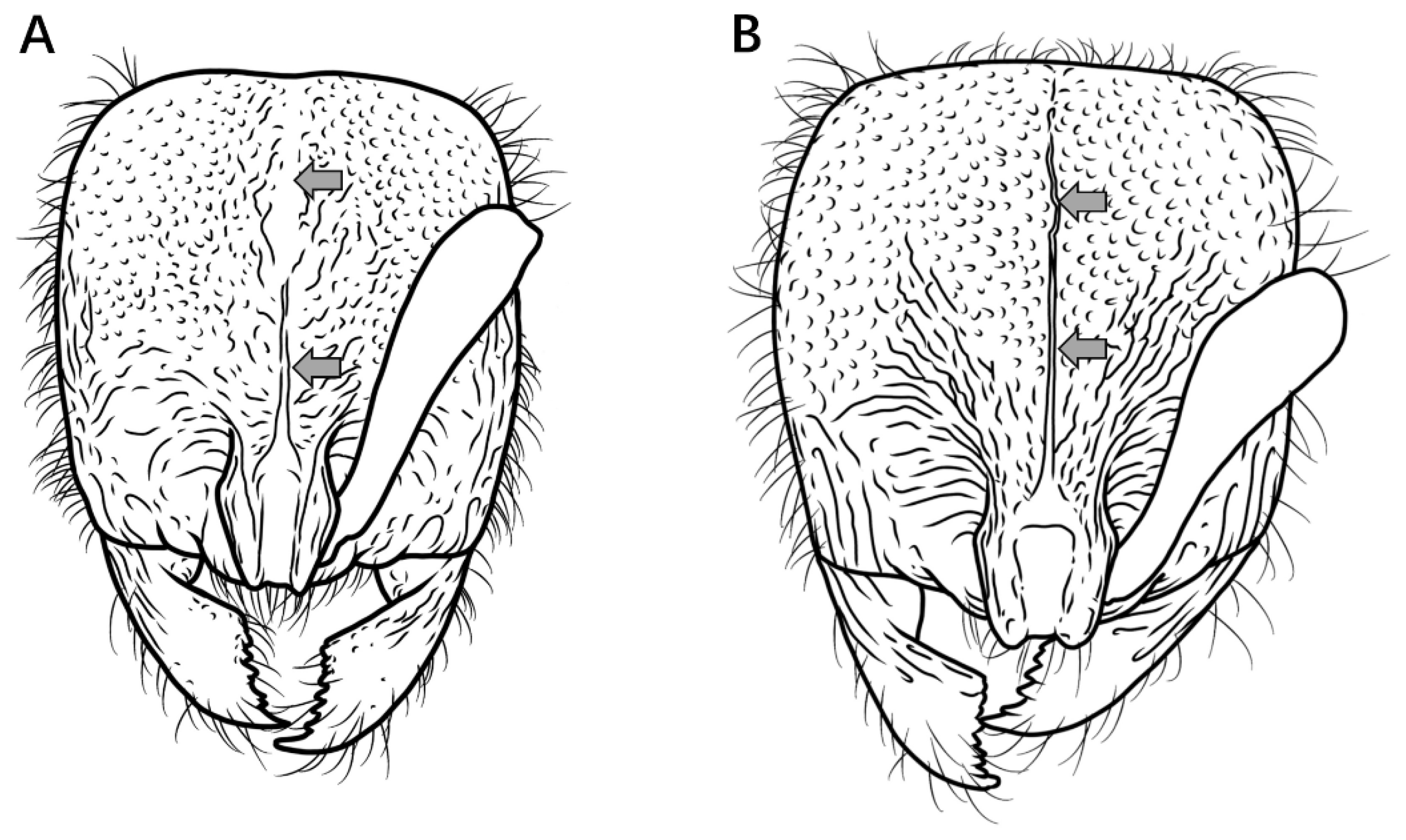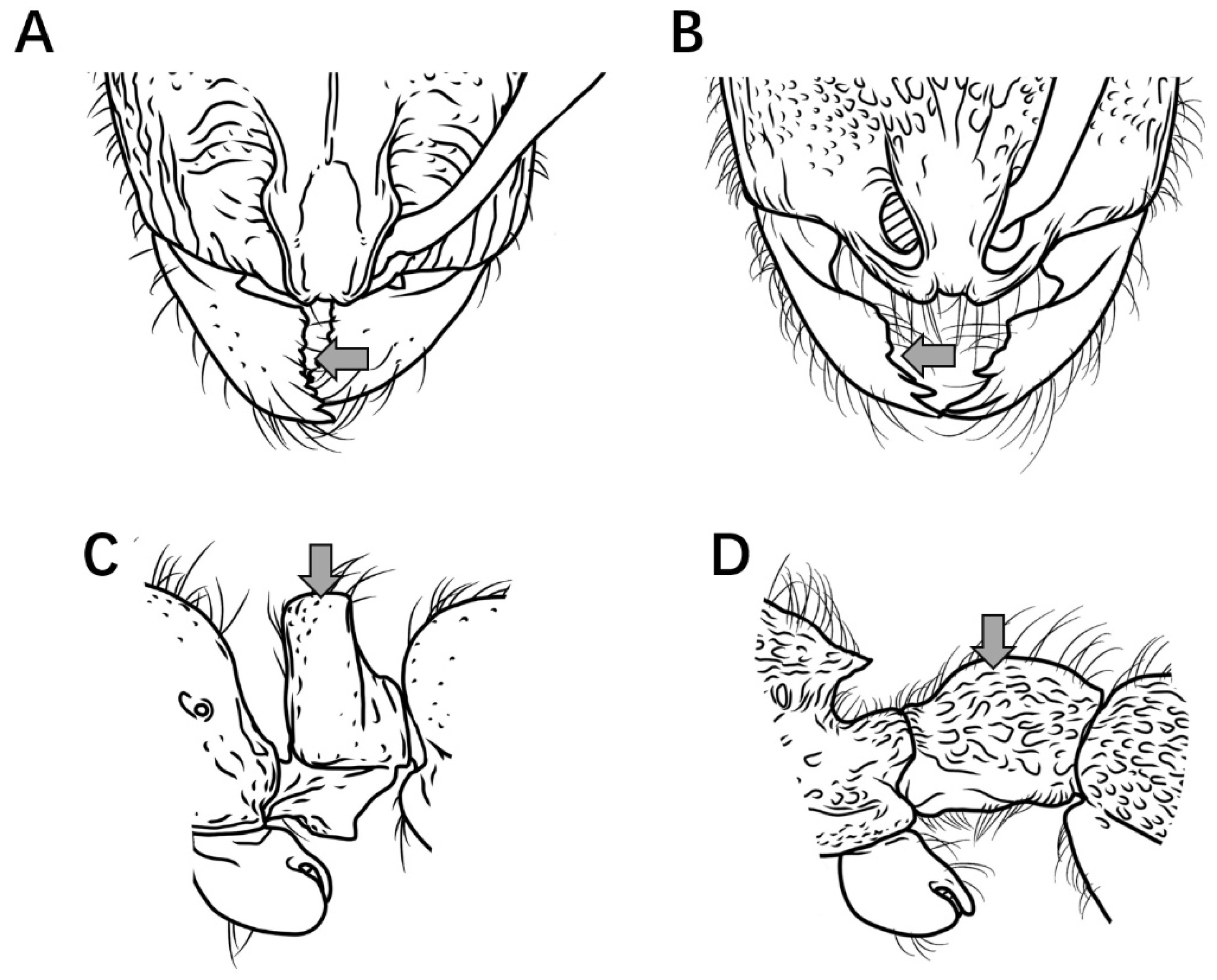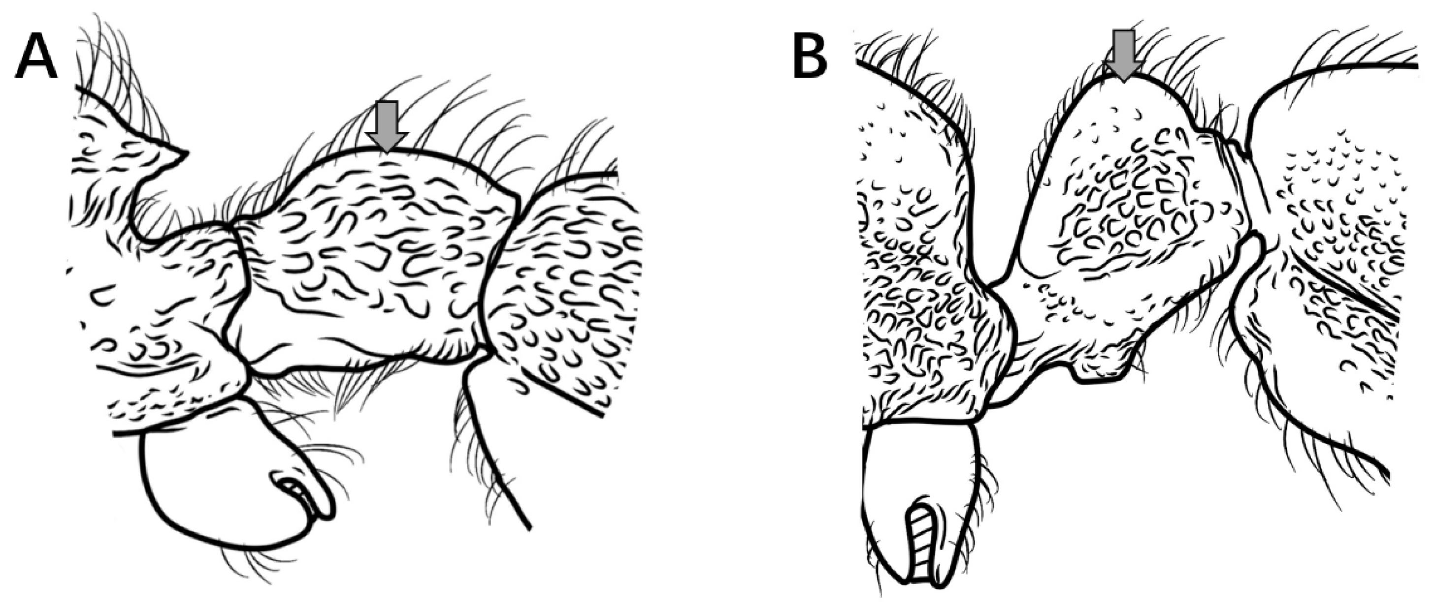 P. itoi possesses a highly diagnostic characteristic: in lateral view, the majority of the second abdominal tergite’s surface is exceptionally smooth and shining, allowing it to be easily distinguished from all other species except