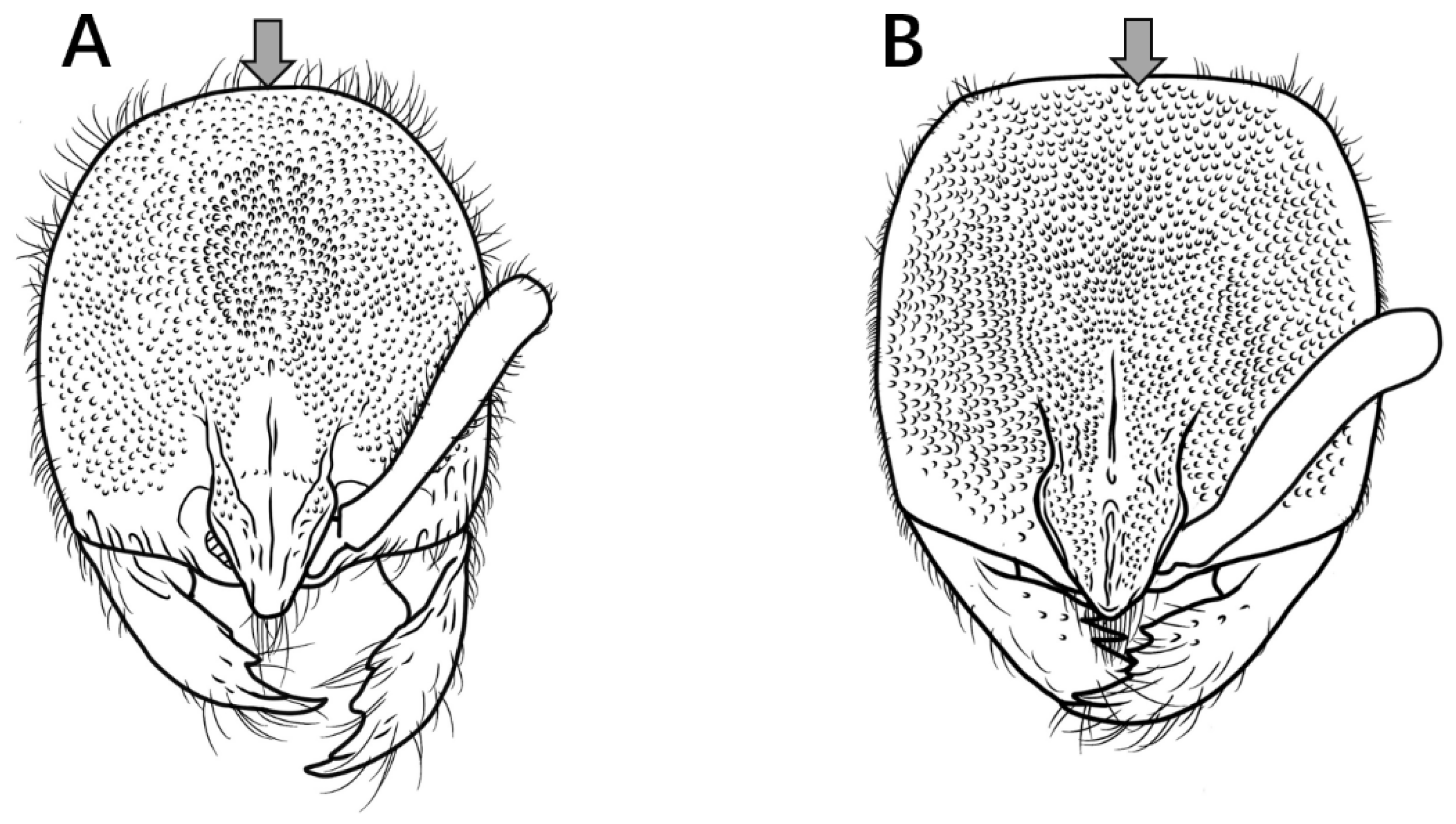 Figure 23. This species is easily distinguishable from all other species in the Oriental region because, in frontal view, the posterior half of its head is smooth and shining, while the dorsum of the promesonotum is highly glossy and lacks sculpturing. Based on currently known species in China, the sculpturing on the body surface of this genus is remarkably stable and can serve as a reliable interspecific diagnostic character. Xu [