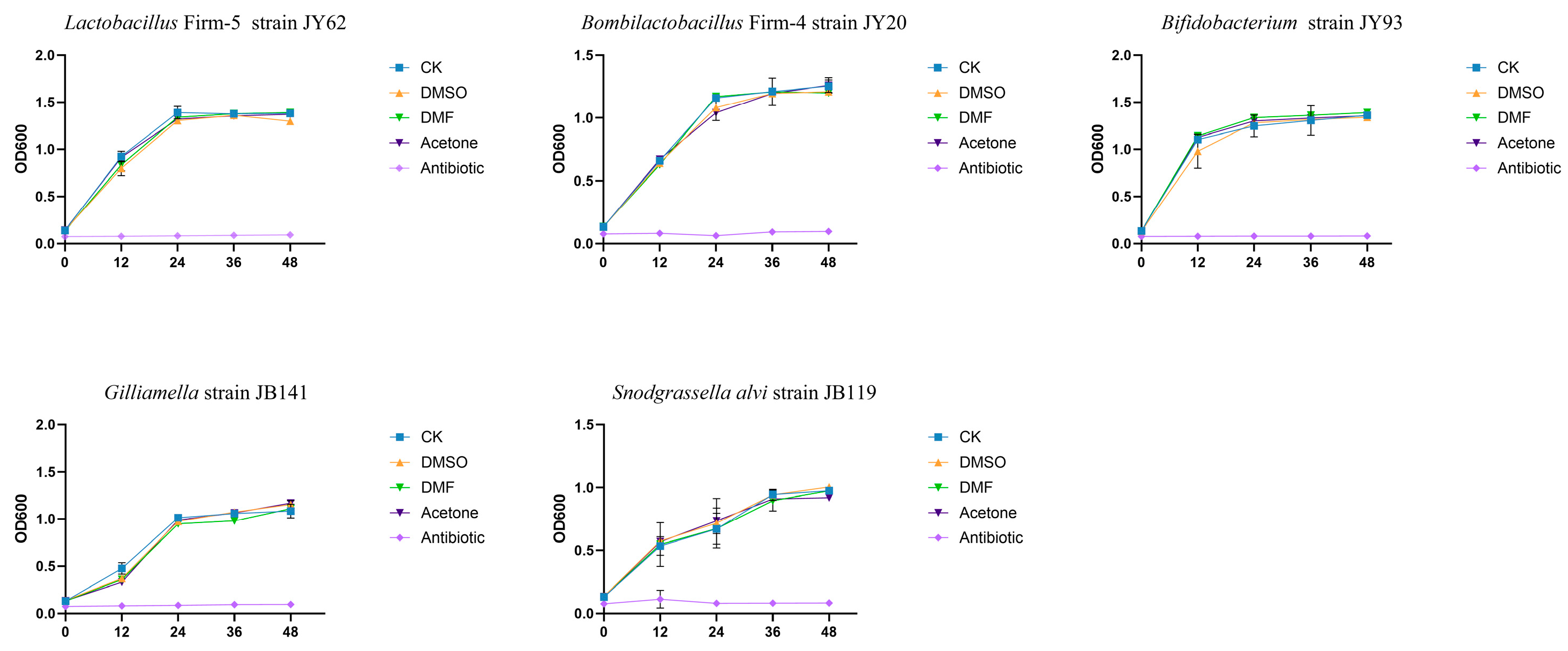 2.4. In Vitro Growth Assay of Gut Bacteria Under Cosolvent Exposure