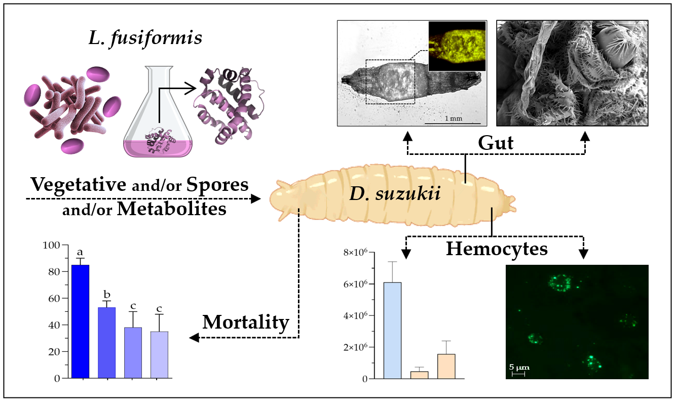Mastore M, Broggio E, Banfi D, Machado RAR, Bhat AH, Kallel S, Reguzzoni M, Quadroni S, Brivio MF. Evaluation of the Insecticidal Potential of Lysinibacillus fusiformis Against Drosophila suzukii Larvae. Insects. 2025; 16(11):1090. https://doi.org/10.3390/insects16111090