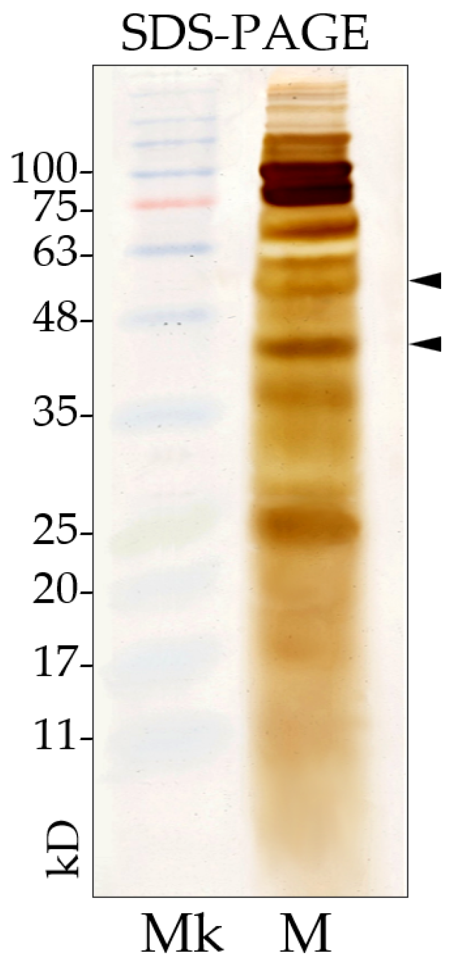 2.6. Electrophoretic Analysis (SDS-PAGE)