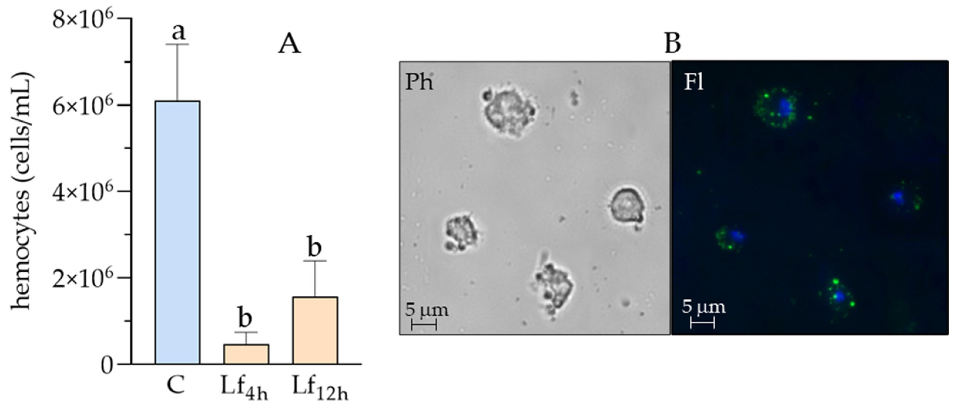 2.8. L. fusiformis Effect on D. suzukii Hemocytes