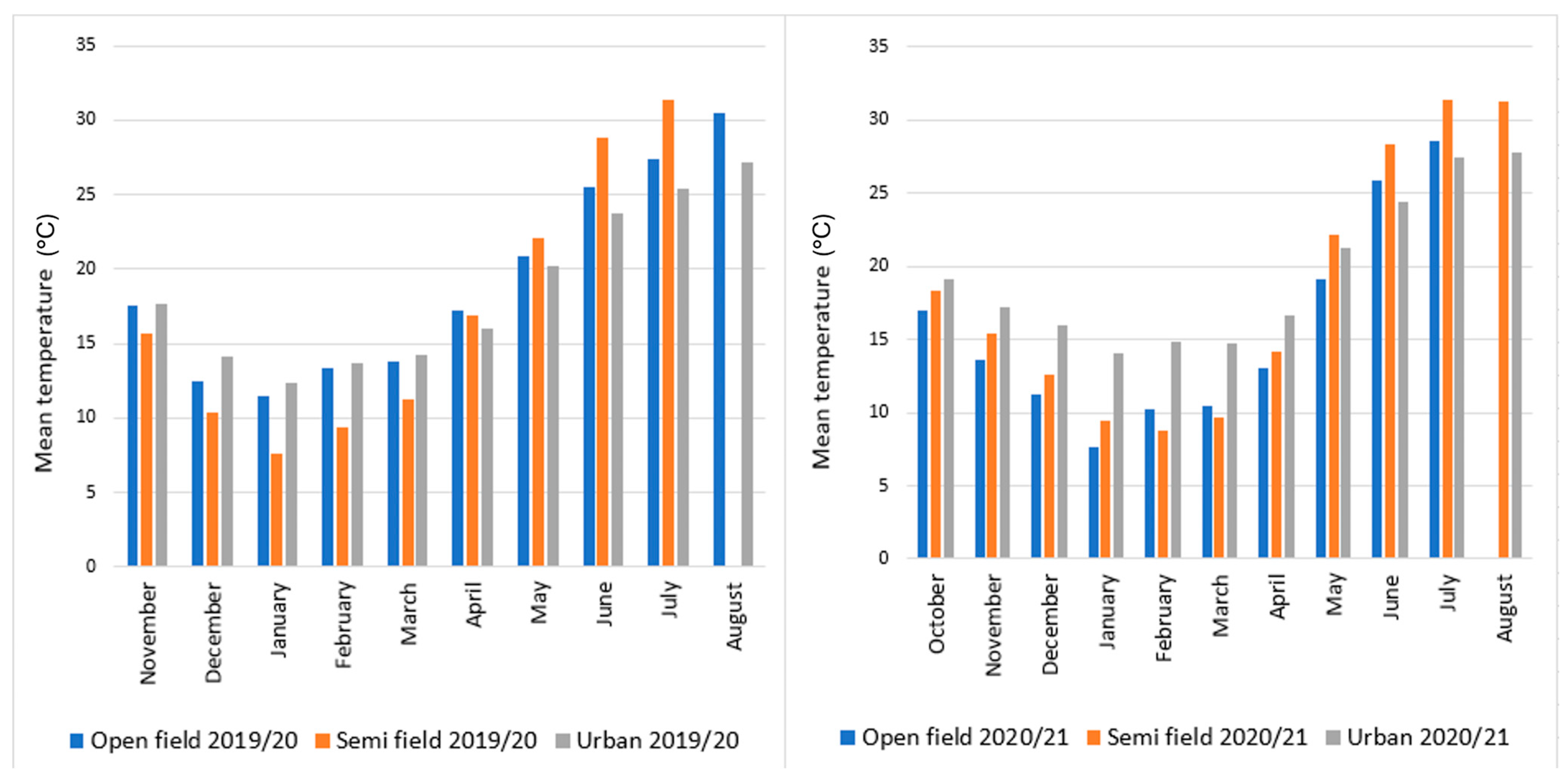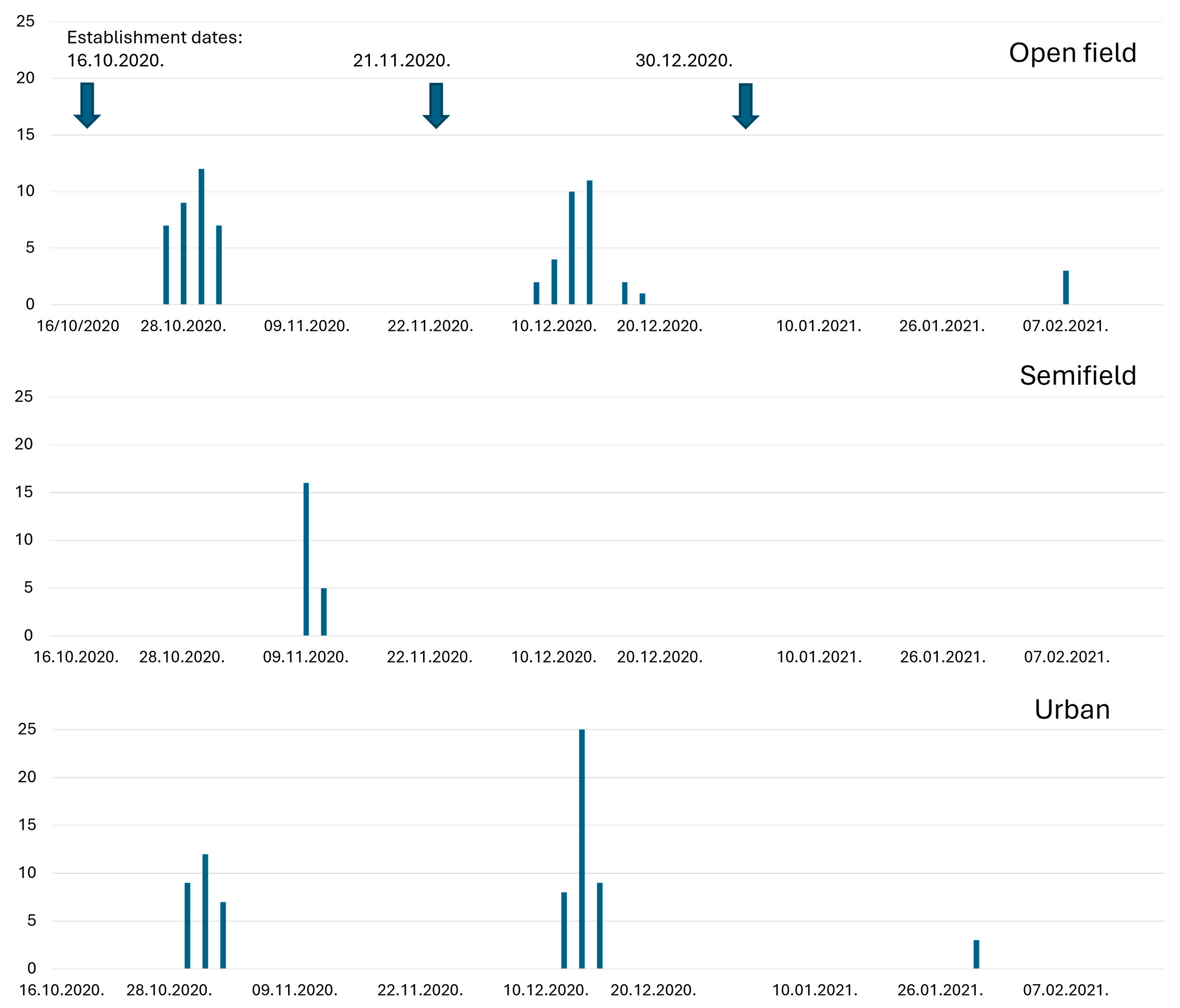 | Open-field | 10 × 3 establishment dates: 30 October 2019, 18 November 2019, 18 December 2019 | 10 × 2 establishment dates 6 November 2020, 14 December 2020 |