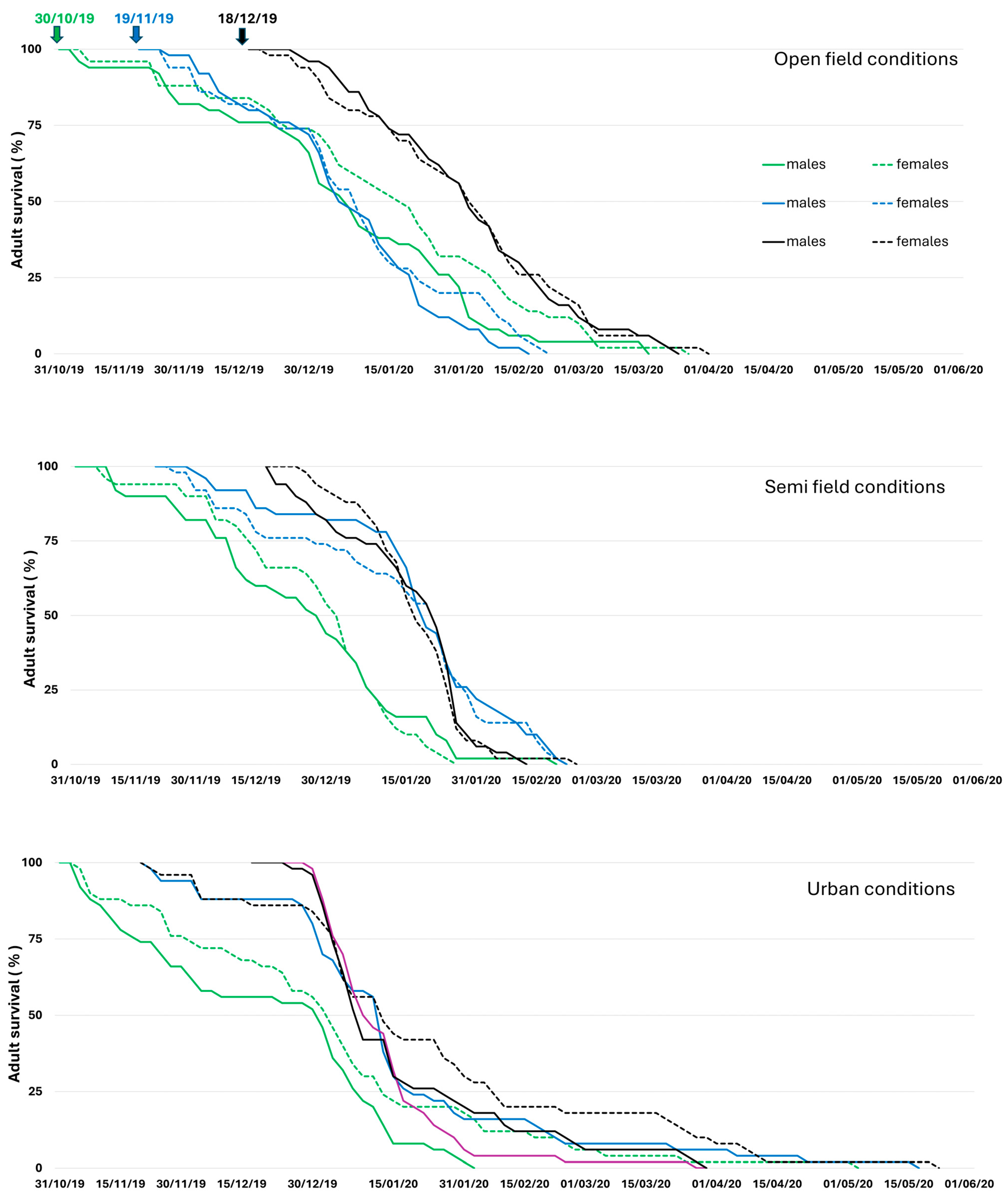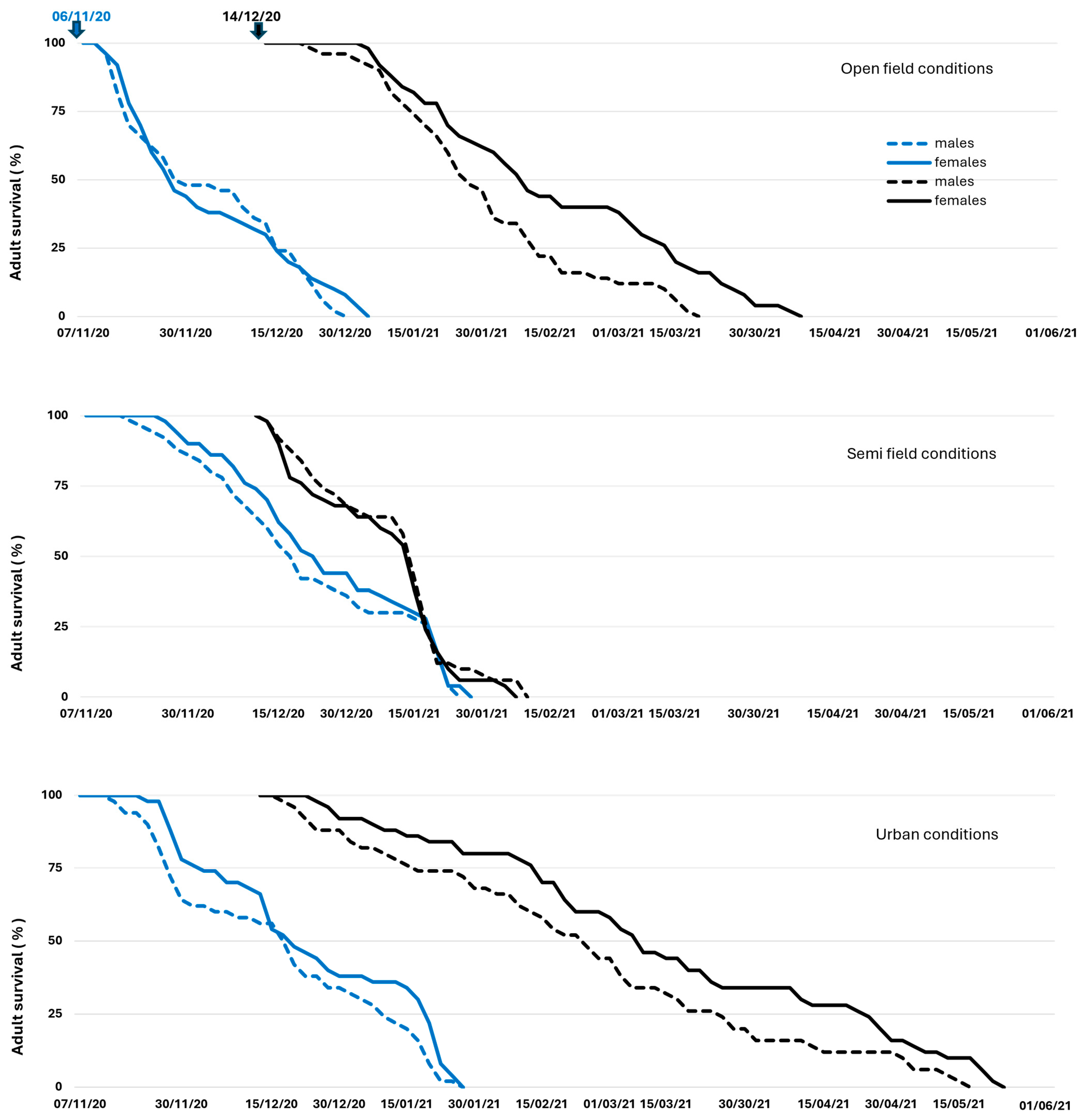 | Open-Field Conditions | Semi-Field Conditions | Urban Conditions | ||||