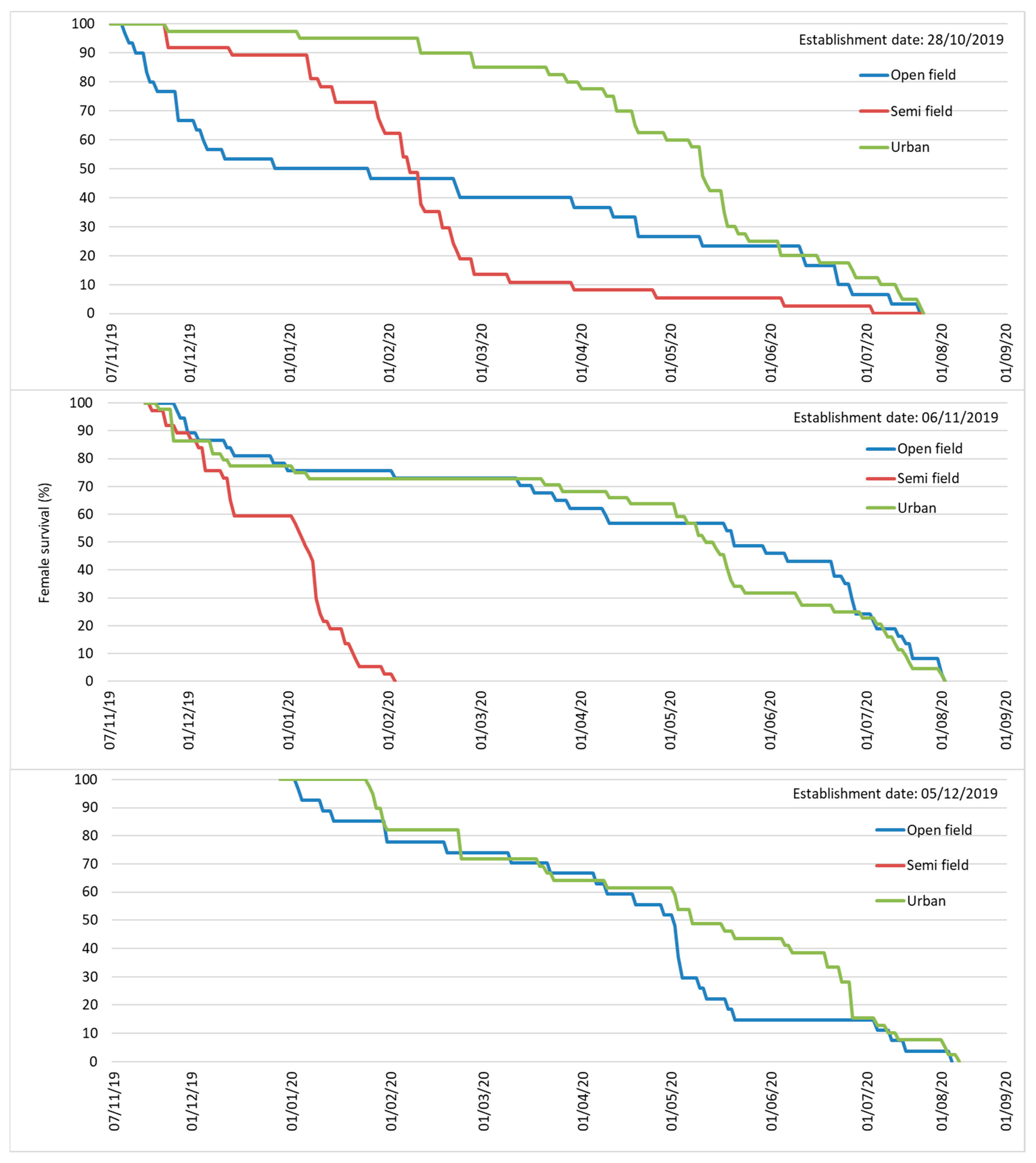 | Establishment Date | Average Life Span (Days ± SE) | |||||