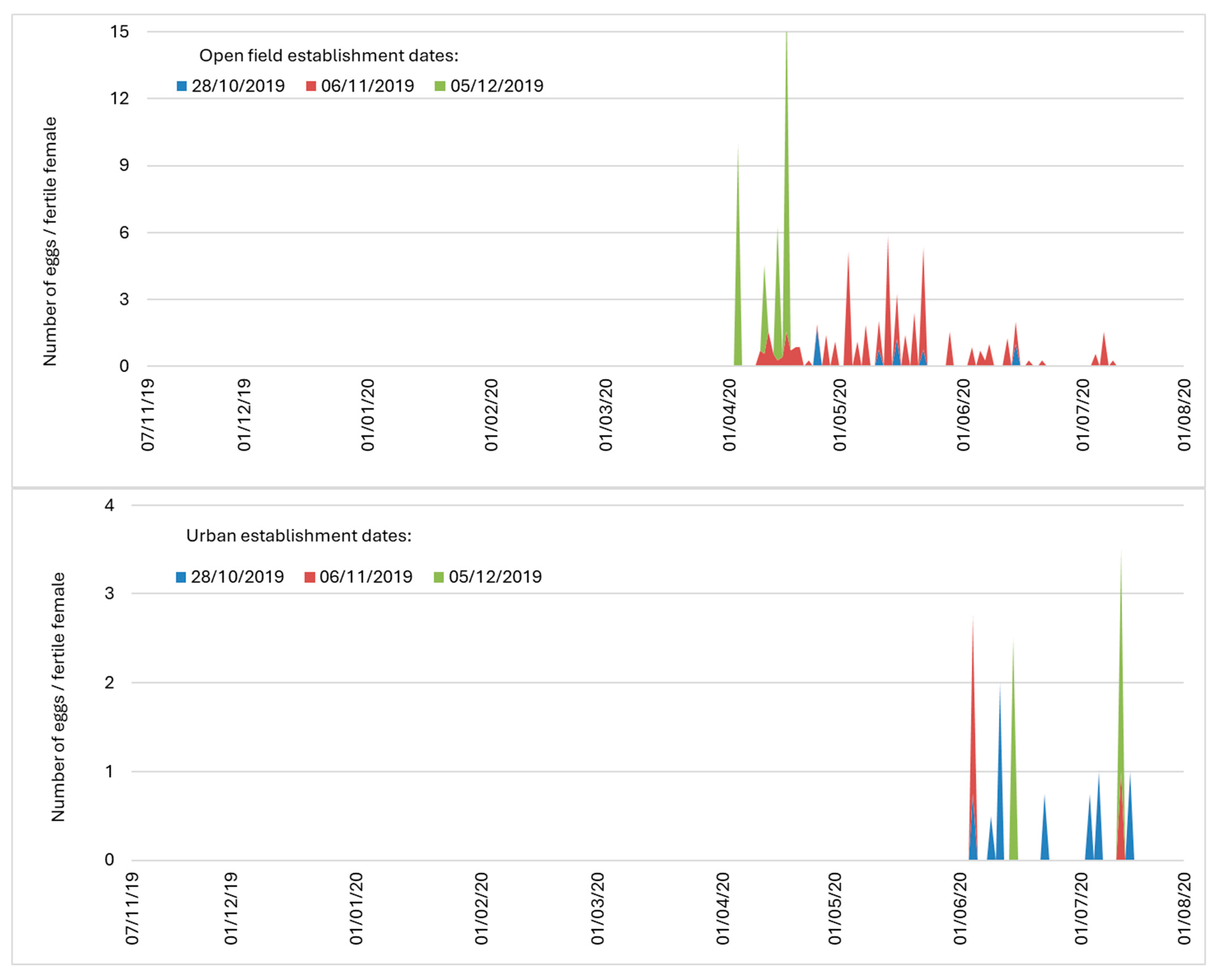| Semi-field | 10 × 3 establishment dates: 30 October 2019, 18 November 2019, 18 December 2019 | 10 × 2 establishment dates 6 November 2020, 14 December 2020 |
