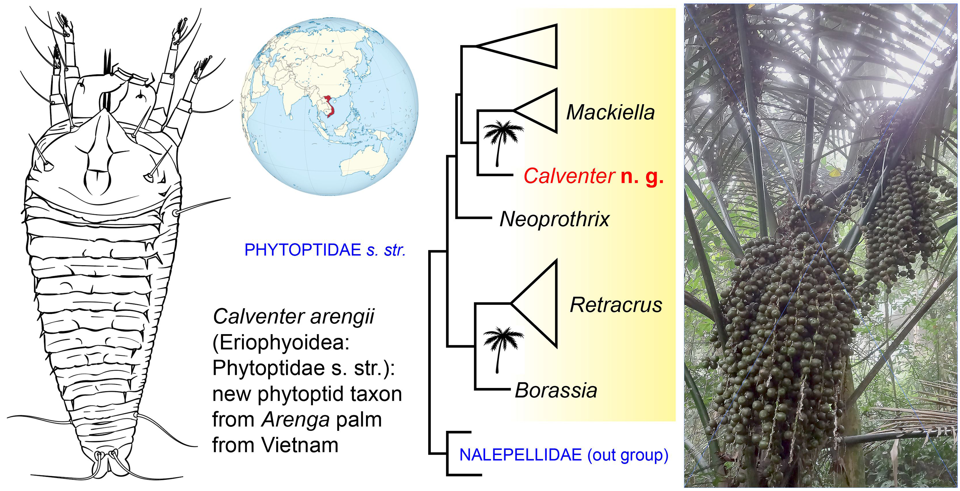 A New Genus of Four-Legged Mites from Palms in Vietnam: The Morphology and Phylogeny of Calventer arengii n. g. & sp. (Eriophyoidea, Phytoptidae) †